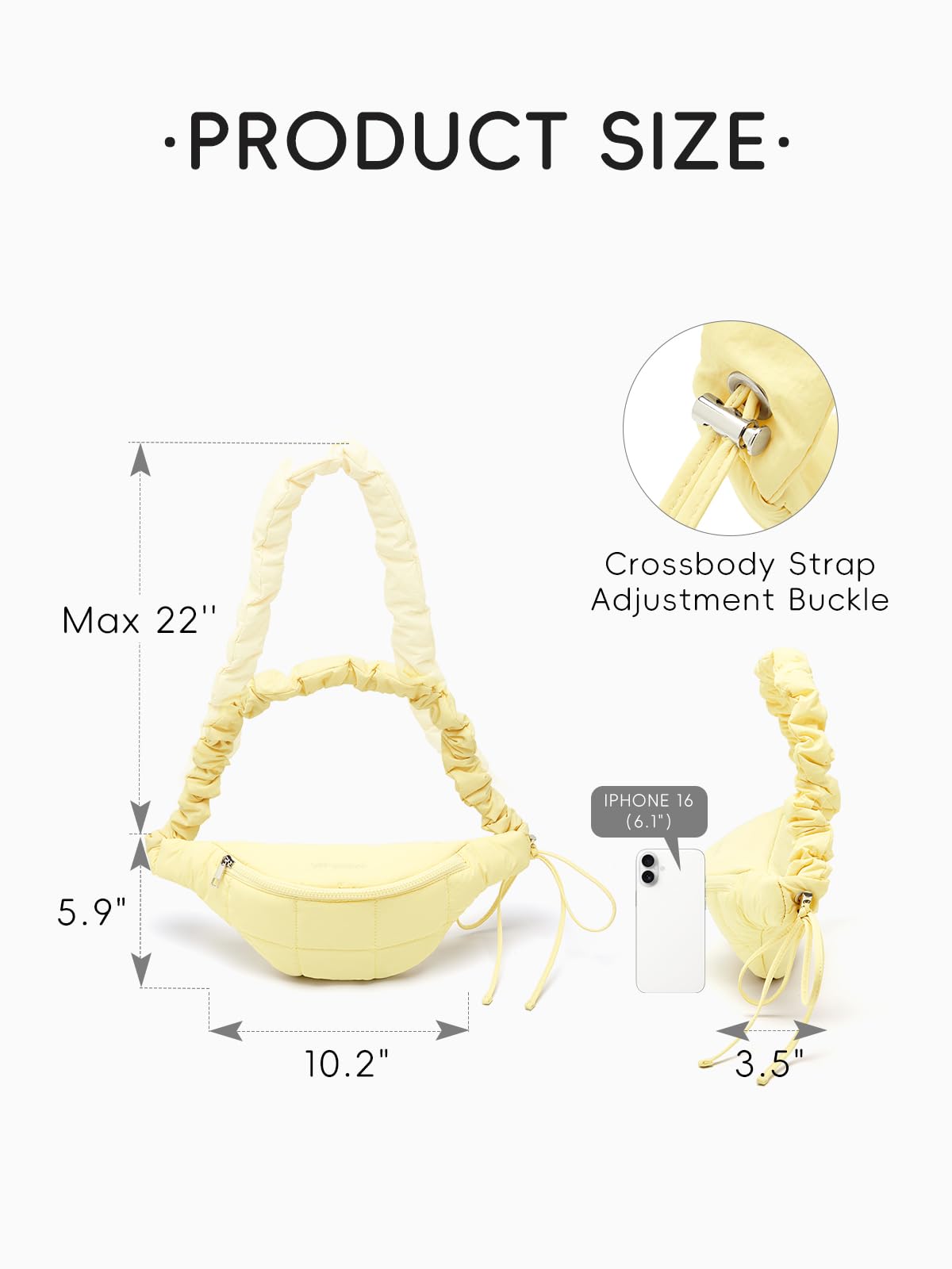 Perfect Compact Size & Durable Material: Measuring 10.2ββΓ3.5ββΓ5.9ββ(L*W*H), this lightweight womenβs sling bag weighs only 0.29lb β lighter than your smartphone! Crafted from durable, water-resistant nylon, this quilted belt bag keeps essentials secure and dry through daily adventures.