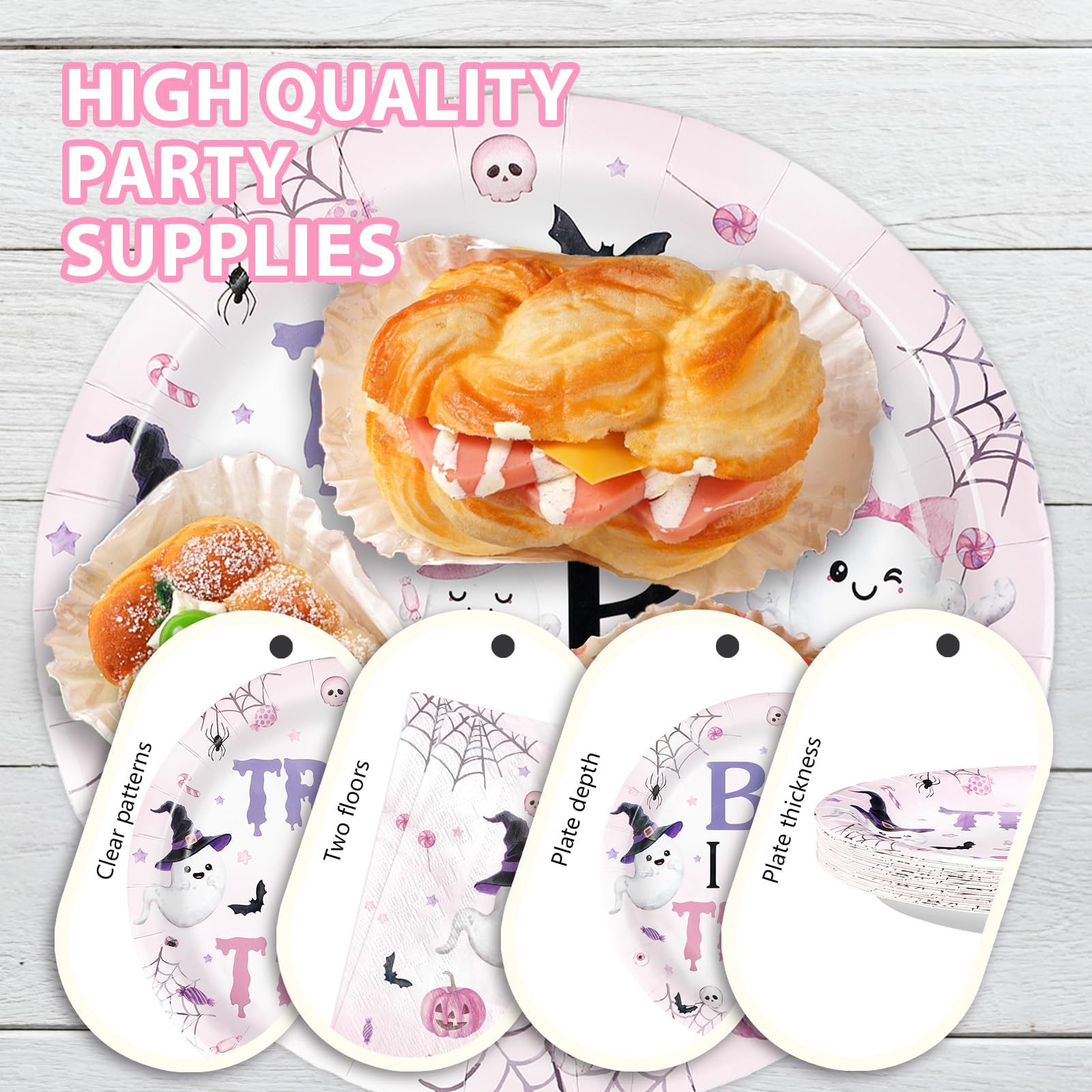 Easy to Clean Up: The pink and purple spooky party decorations are disposable, after the birthday party is over, you can simply pack them up and throw them straight in the trash, saving your hands from dishwashing and the hassle of cleaning up, so you can spend more time and energy creating unforgettable memories with your little cutie
