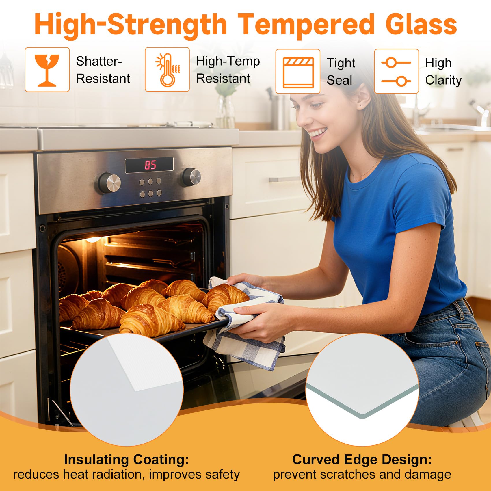 Premium Materials: WPW10409945 oven door glass replacement Crafted from high-temperature resistant tempered glass, exceeds OEM standards for durability, heat resistance, and overall strength. The special coating inside the glass can accelerate heat conduction, prevent heat loss, better lock in oven heat, and produce delicious food.