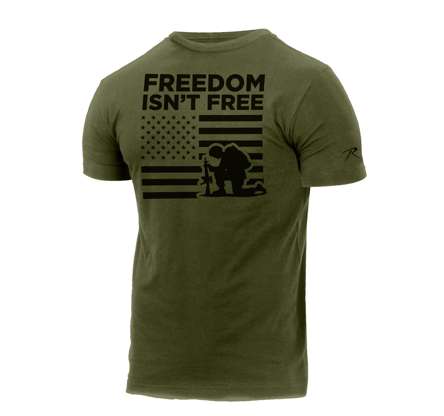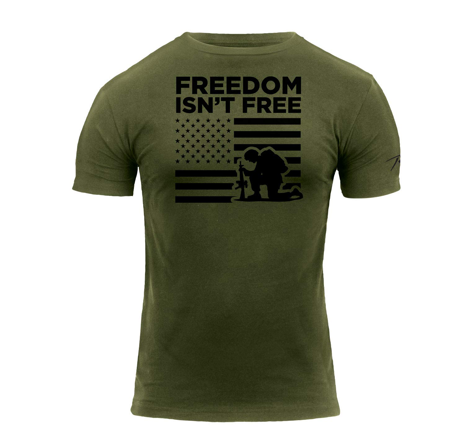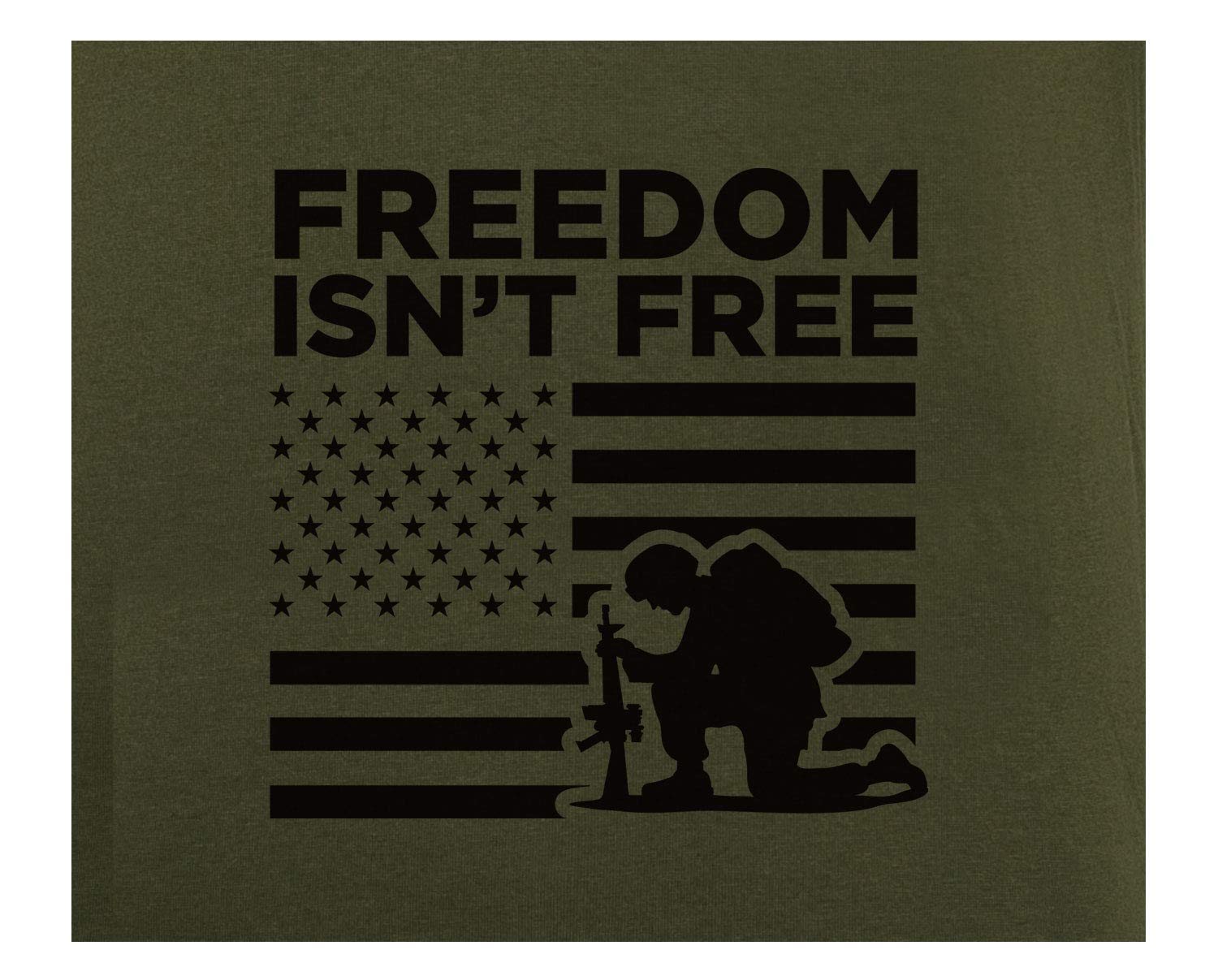 Patriotic Design: Bold US flag graphic with "Freedom Isn't Free" text.