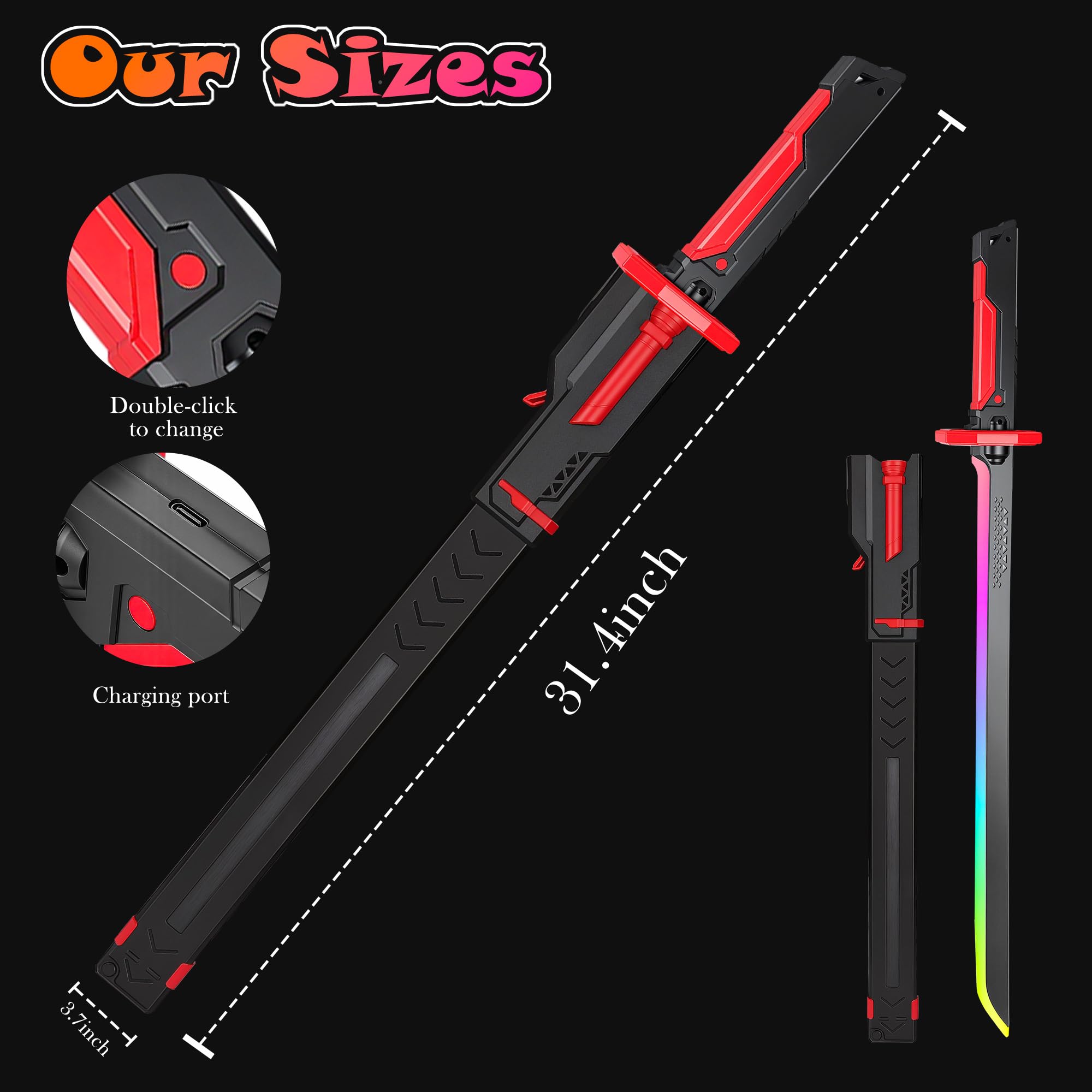 【Safe Use】Toy swords To prevent potential injury and damage, please avoid striking hard objects, do not point the sword at people or animals, and it is recommended for teenagers aged 12+ kids and adults