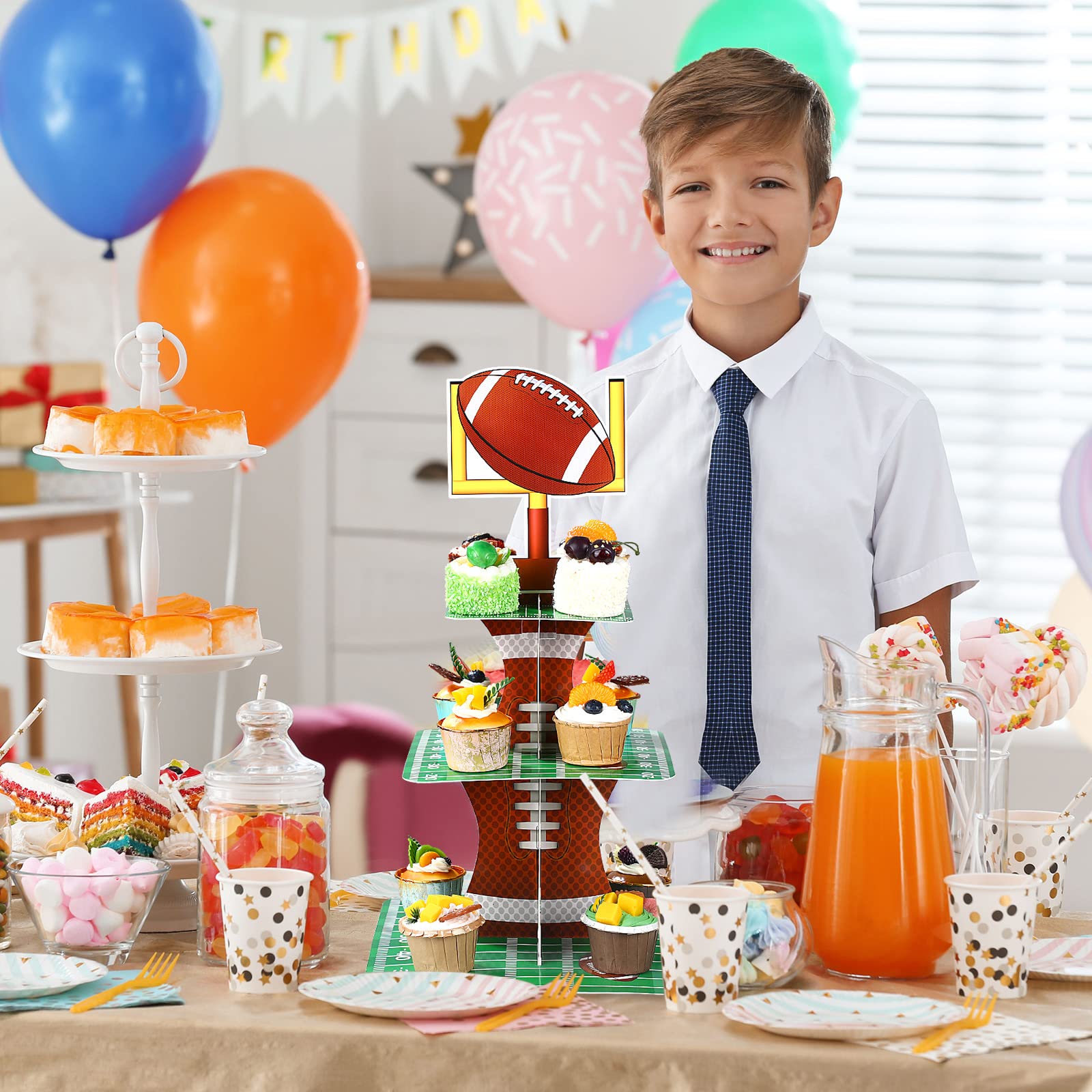 Party Supplies: football cupcake stand will be ideal for football party decorations, football party supplies, sports theme party decorations, football competition celebration, birthday party supplies for teenagers, friends, as well as other football lovers