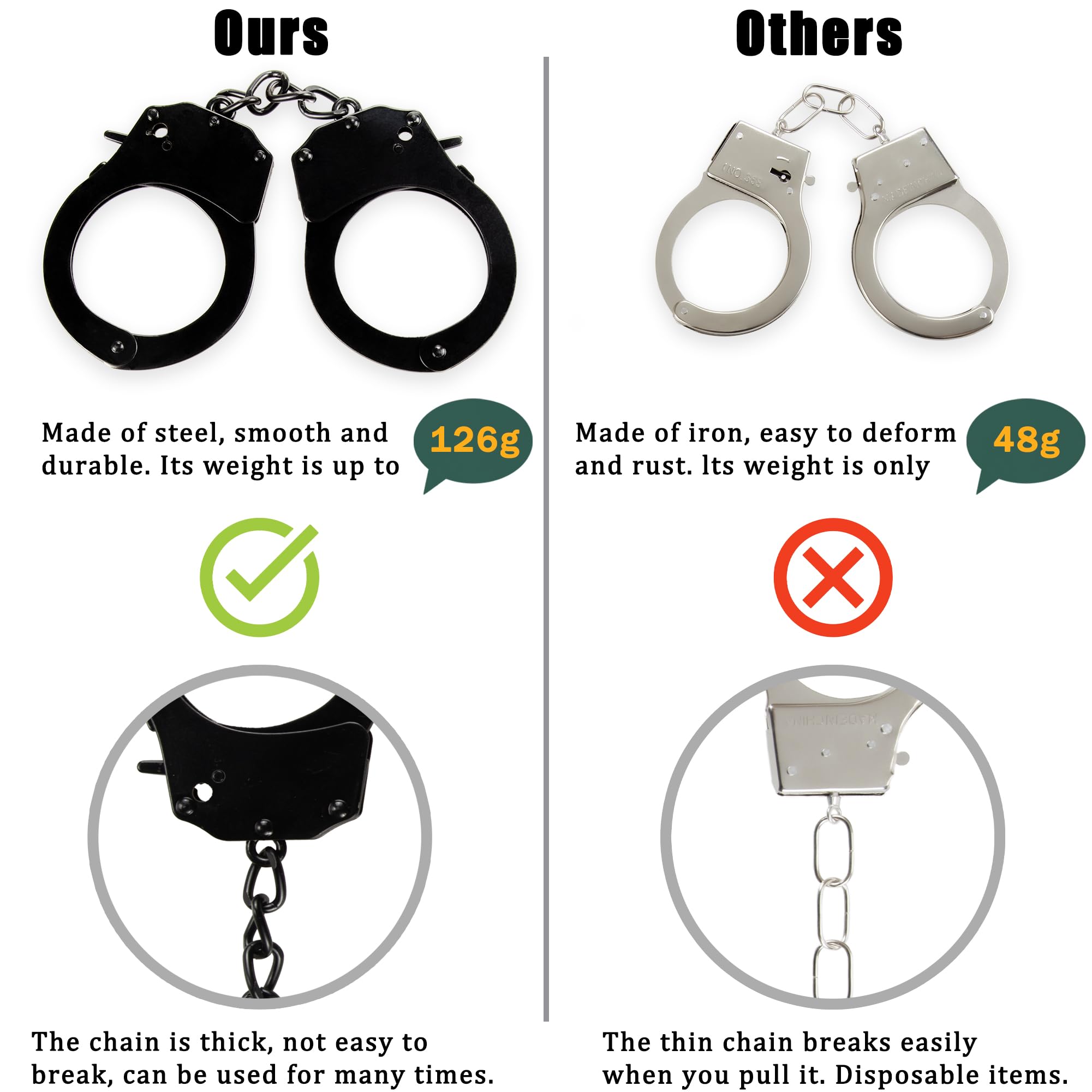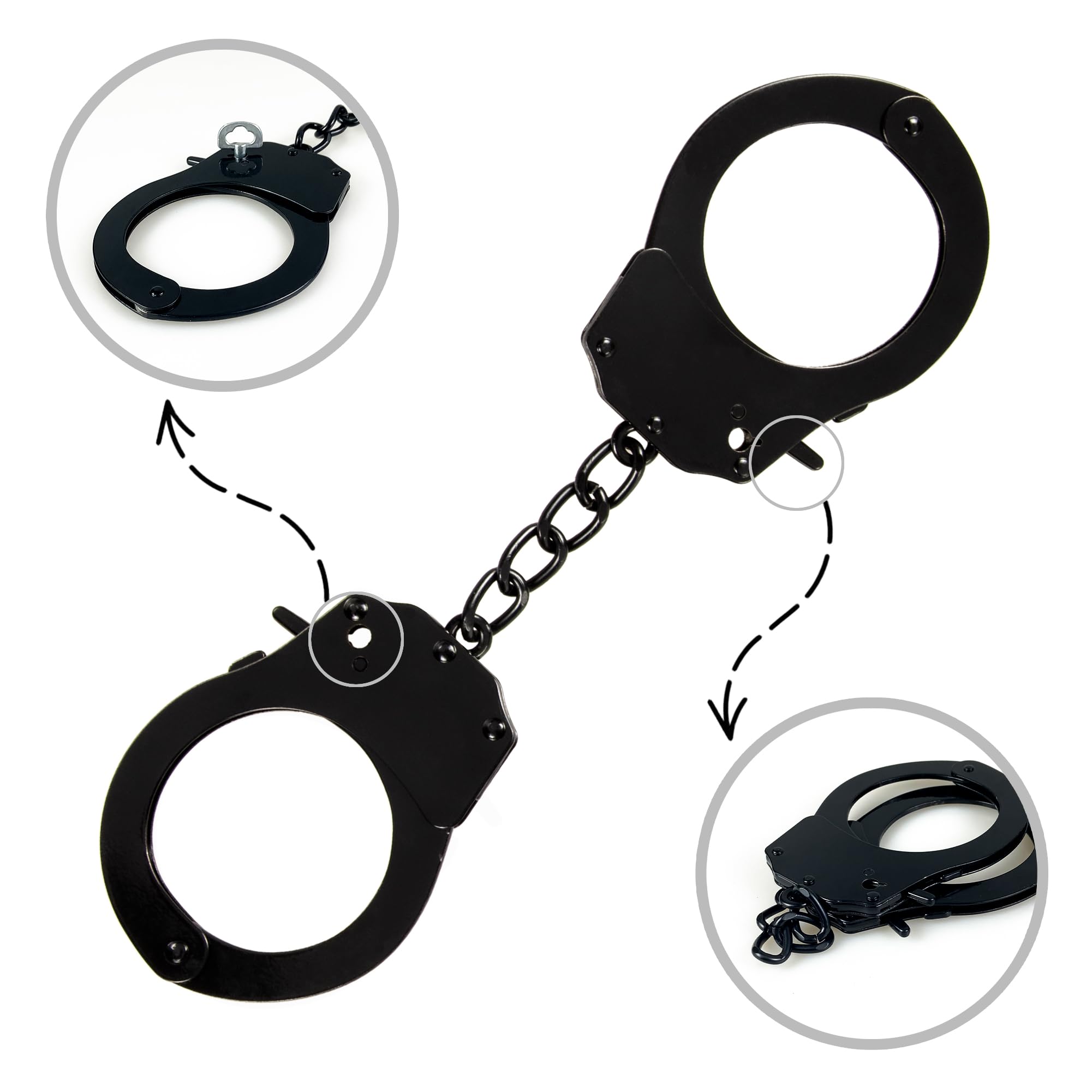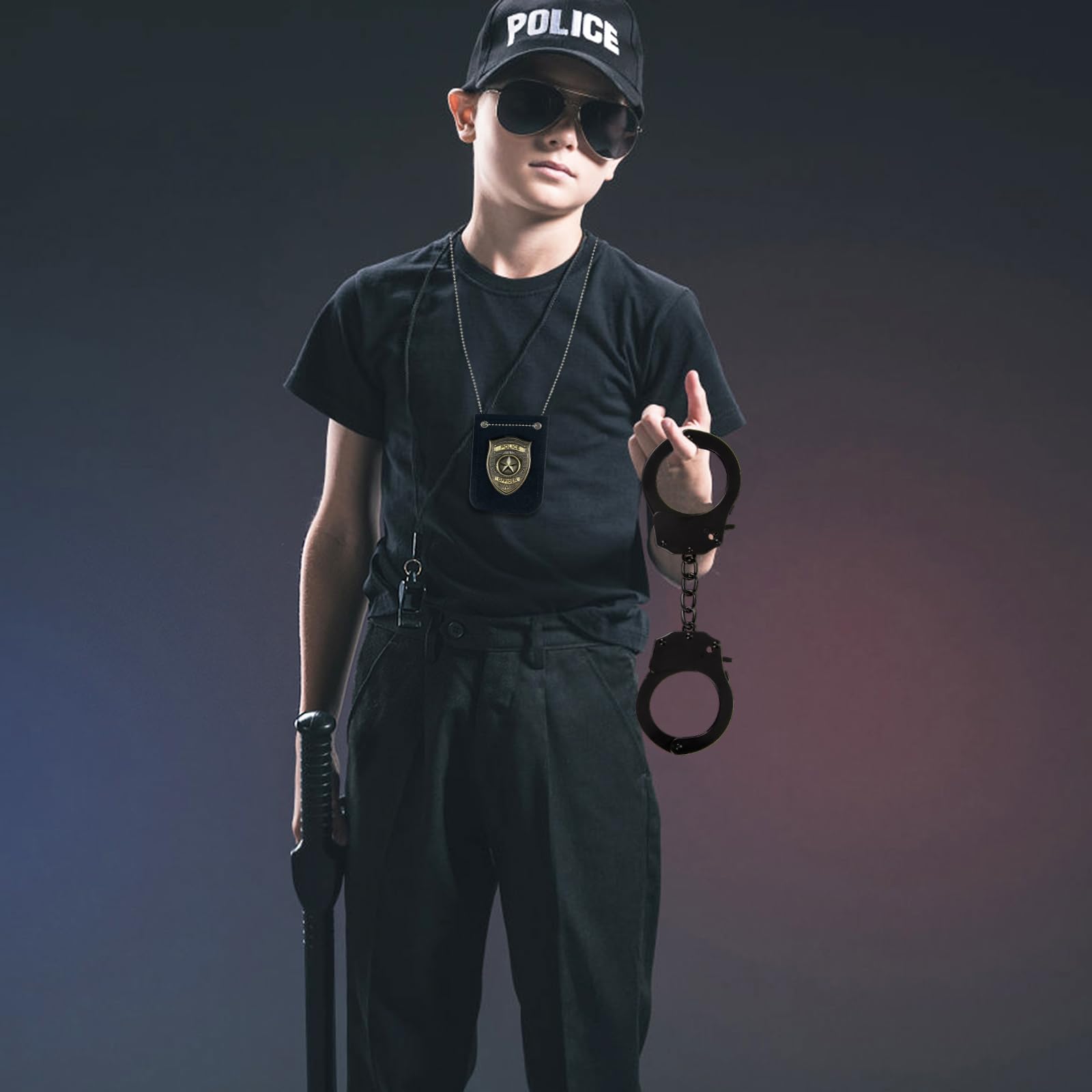 EXCEPTIONAL QUALITY: The toy handcuffs are made of superior steel and the police badge with chain (removable) is made of premium leather with a premium metal badge (removable) that you can wear around your neck or clip in your pocket