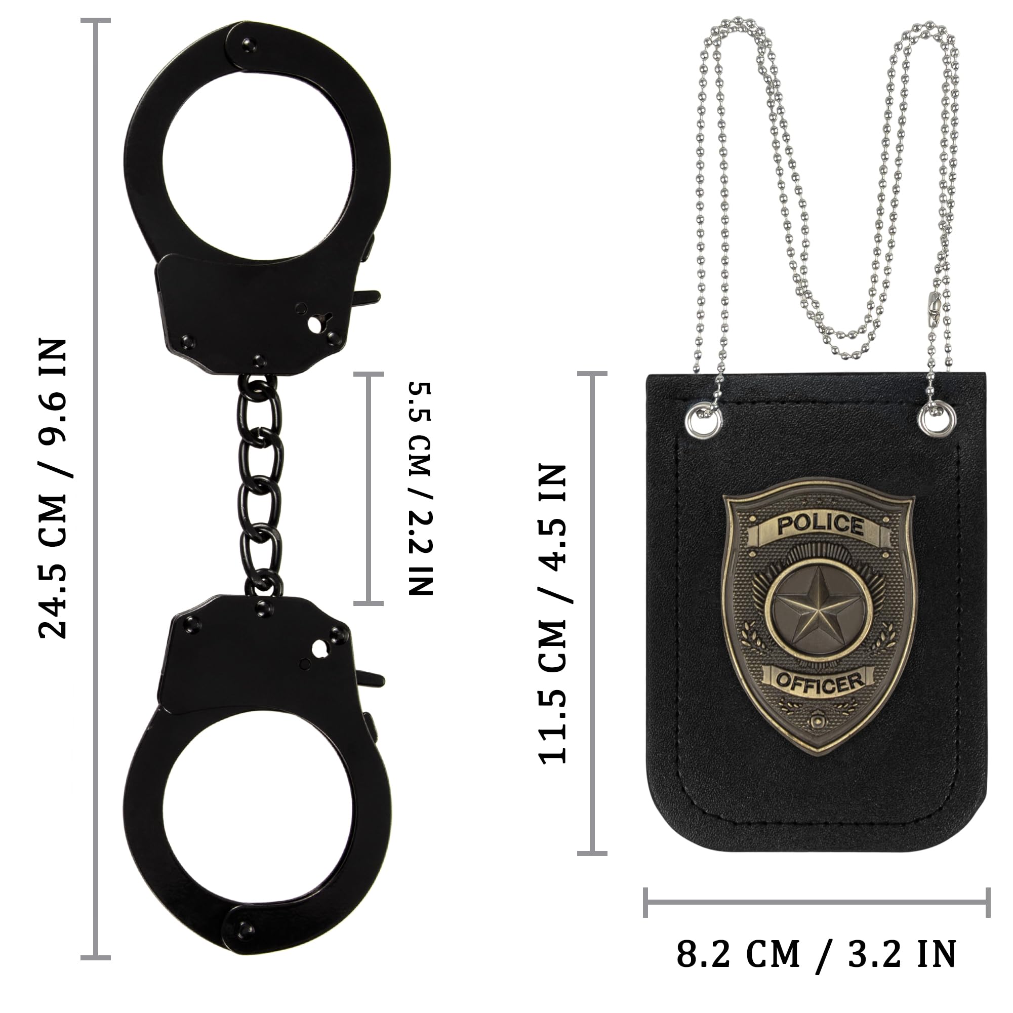 Description Police Badge and Toy Handcuffs Set for Police Pretend Play, Police Party Favors, Halloween Costumes Accessories