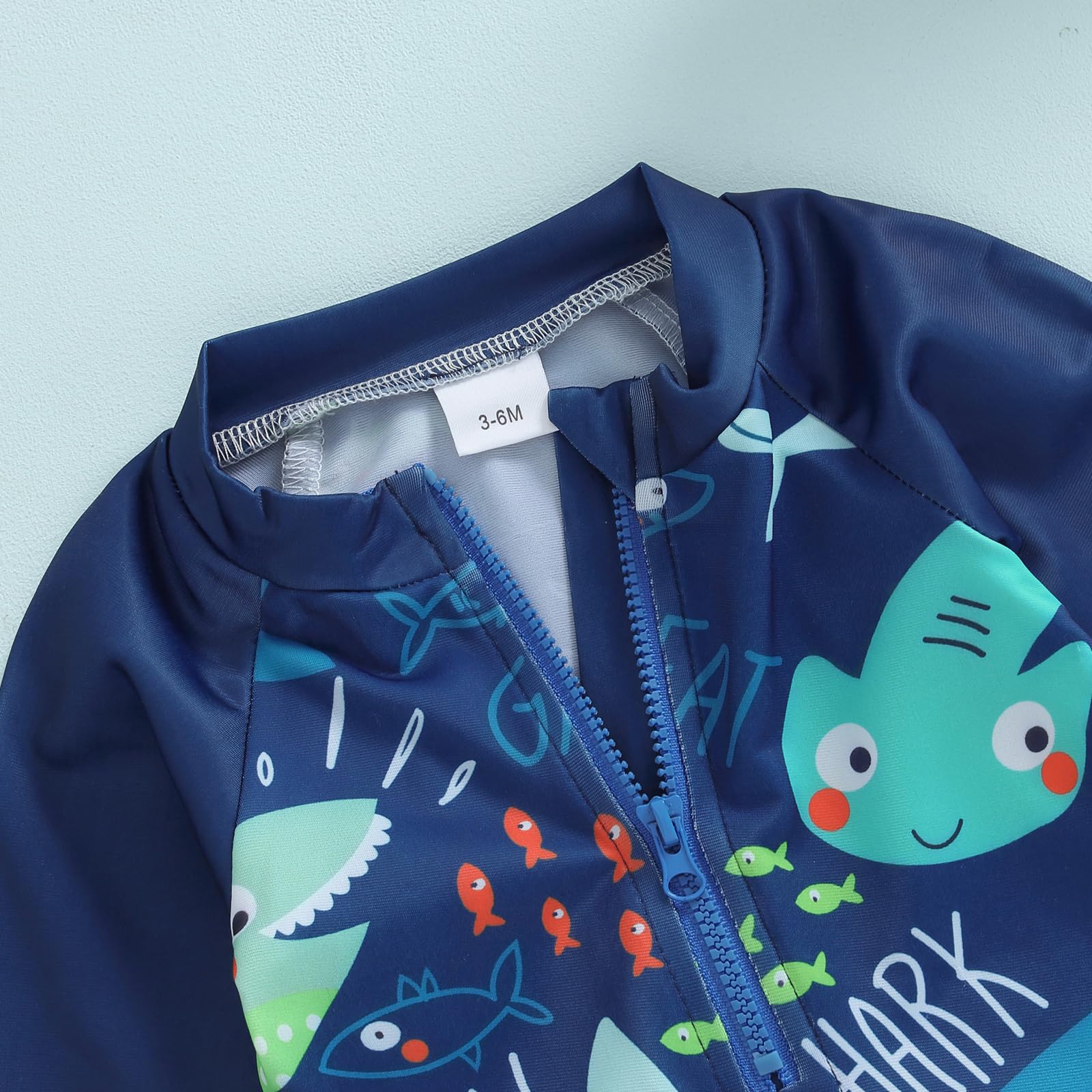 Design: Toddler bathing suit boy, infant long sleeve swimsuit boy, round neck, back/front zipper closure for easy on and off, newborn swimsuit boy, dinosaur/marine animal print, super cute and lovely, your little boy will stand out in the crowd