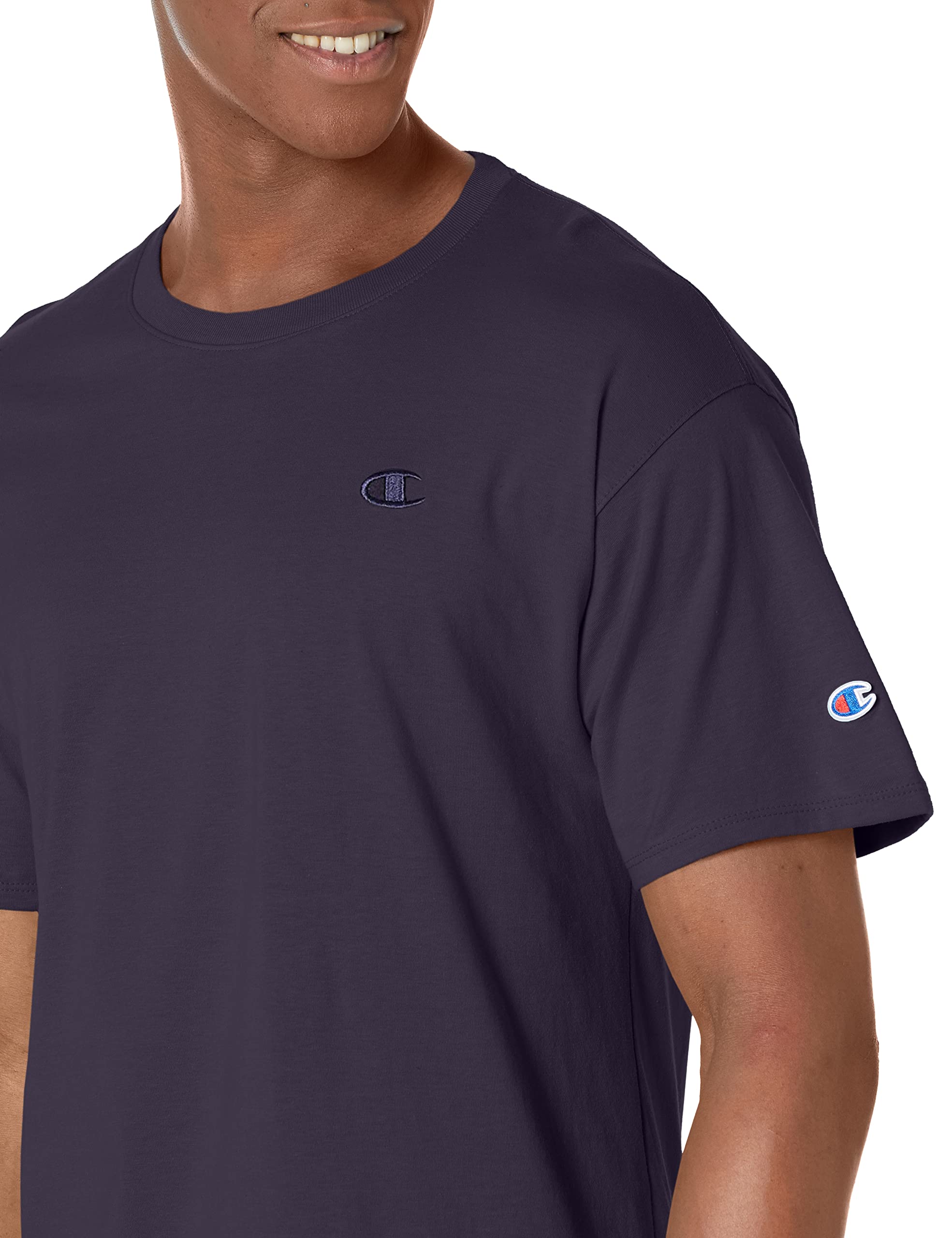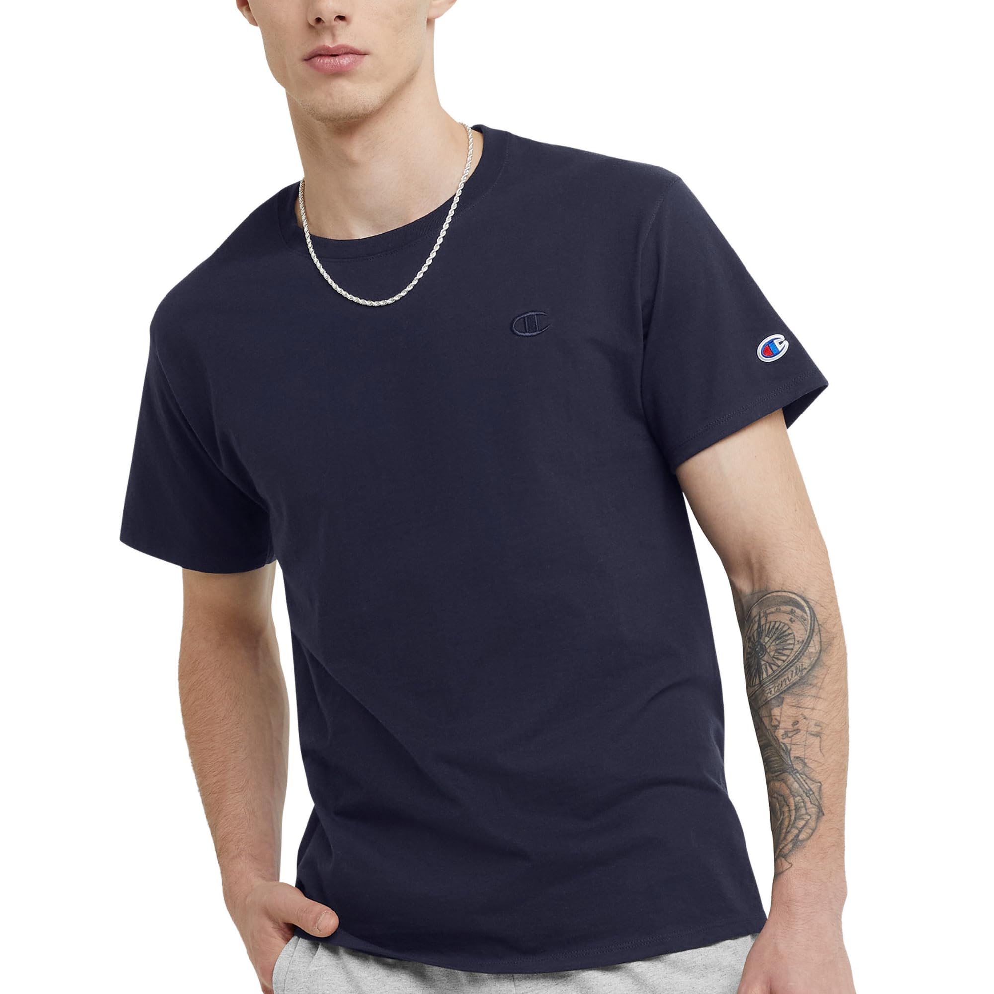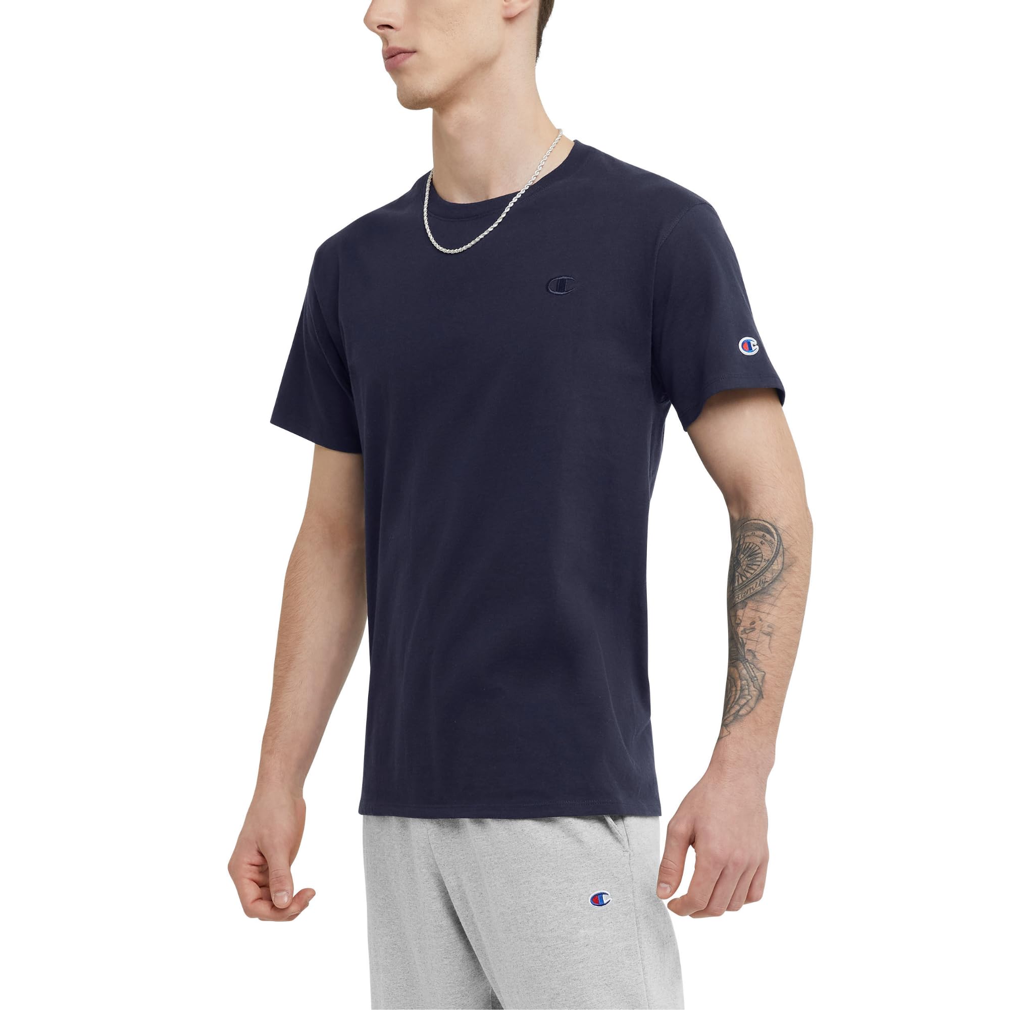 Description TIMELESS THREADS. Add lived-in comfort to your daily rotation with this T-shirt for men, expertly crafted from a soft cotton or cotton blend. Cut for a standard fit, it's detailed with a shape-holding ribbed crewneck, short sleeves, and matching back neck tape for no-irritation comfort. This classic men's T-shirt style is a must-have that pairs well with sweats and shorts for a rounded-out sporty look. Finished with the iconic C logo patch embroidered at the chest for an authentic look.