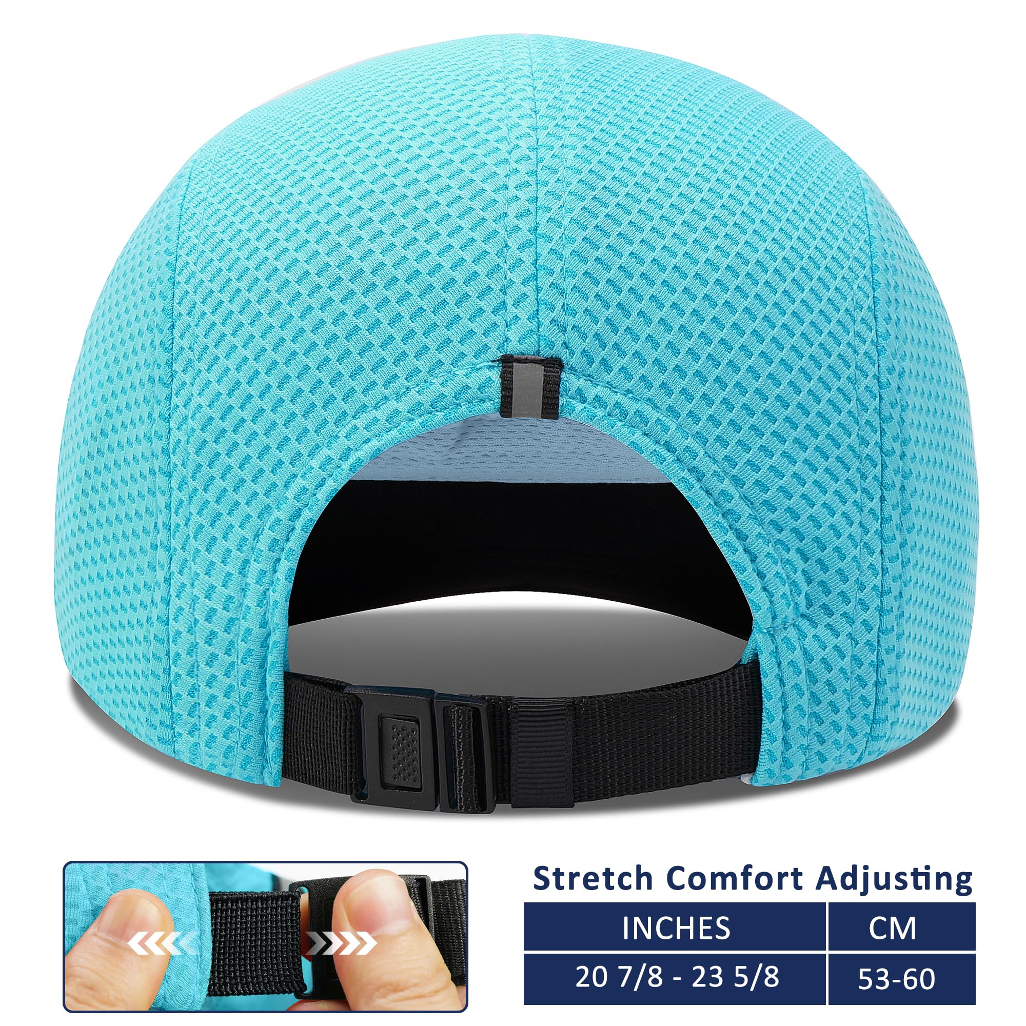 Excellent Ventilation: Polyester mesh construction delivers exceptional breathability and allows air to flow freely through the fabric. Soft moisture-absorbing sweat band can quickly absorb moisture. Moisture-absorbing and quick-drying fabric works to help keep you dry and comfortable
