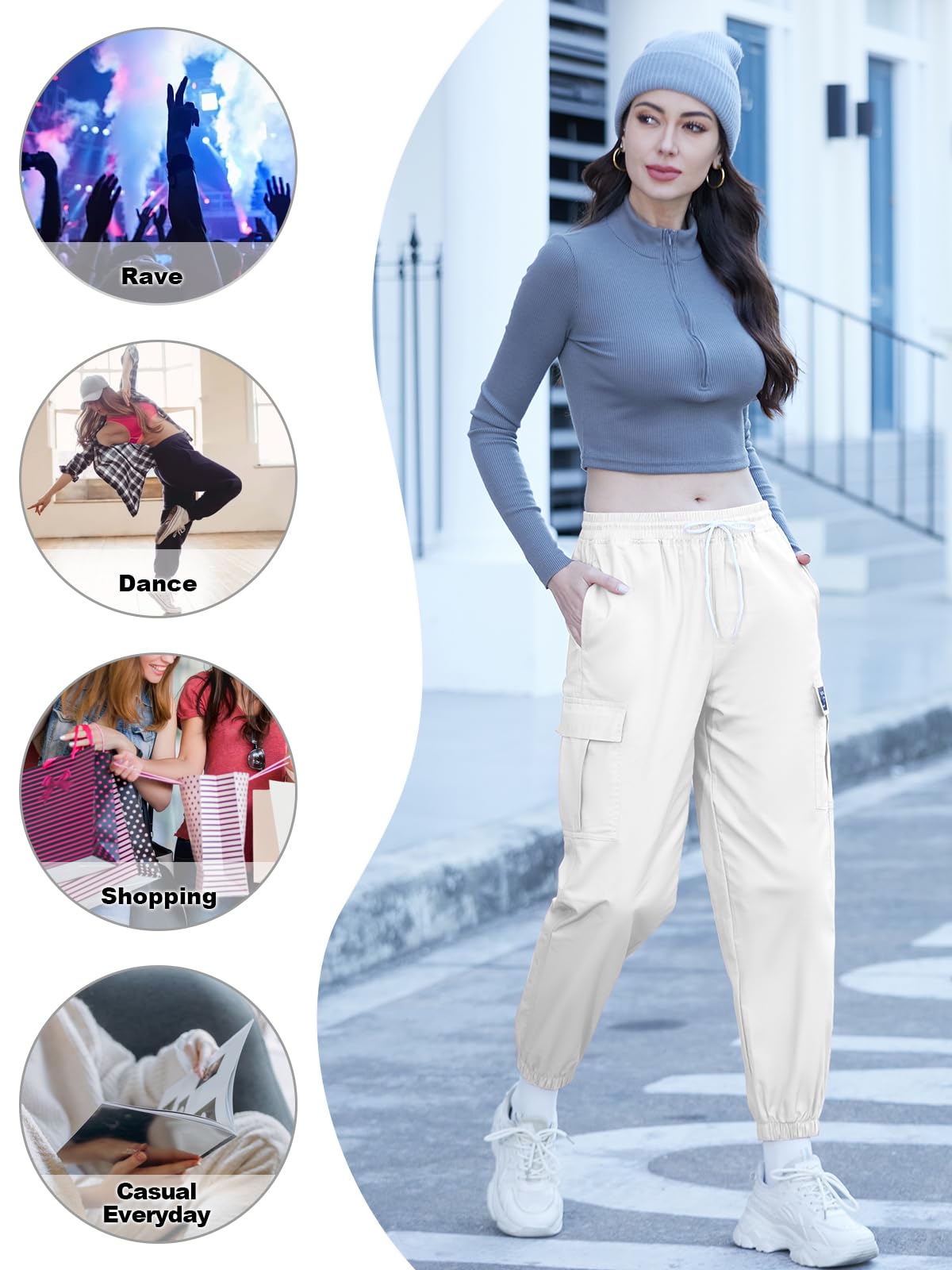 Features:Solid color & pattern,high waist,elastic ankle cuffs and tapered leg.Multi pockets are convenient and practical for you to carry the small things.