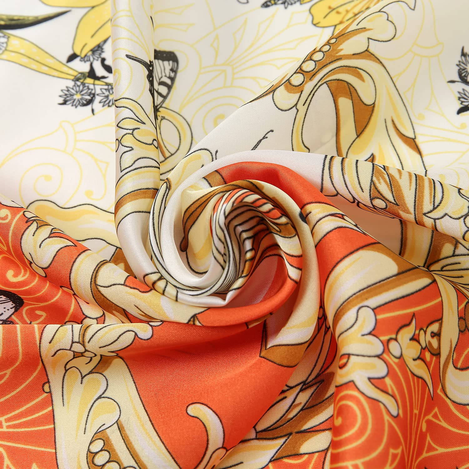 FABRIC: Made of 100% superior quality polyester, the touch of the scarf is silky and soft just like silk scarf, and looks shiny like satin scarf.
