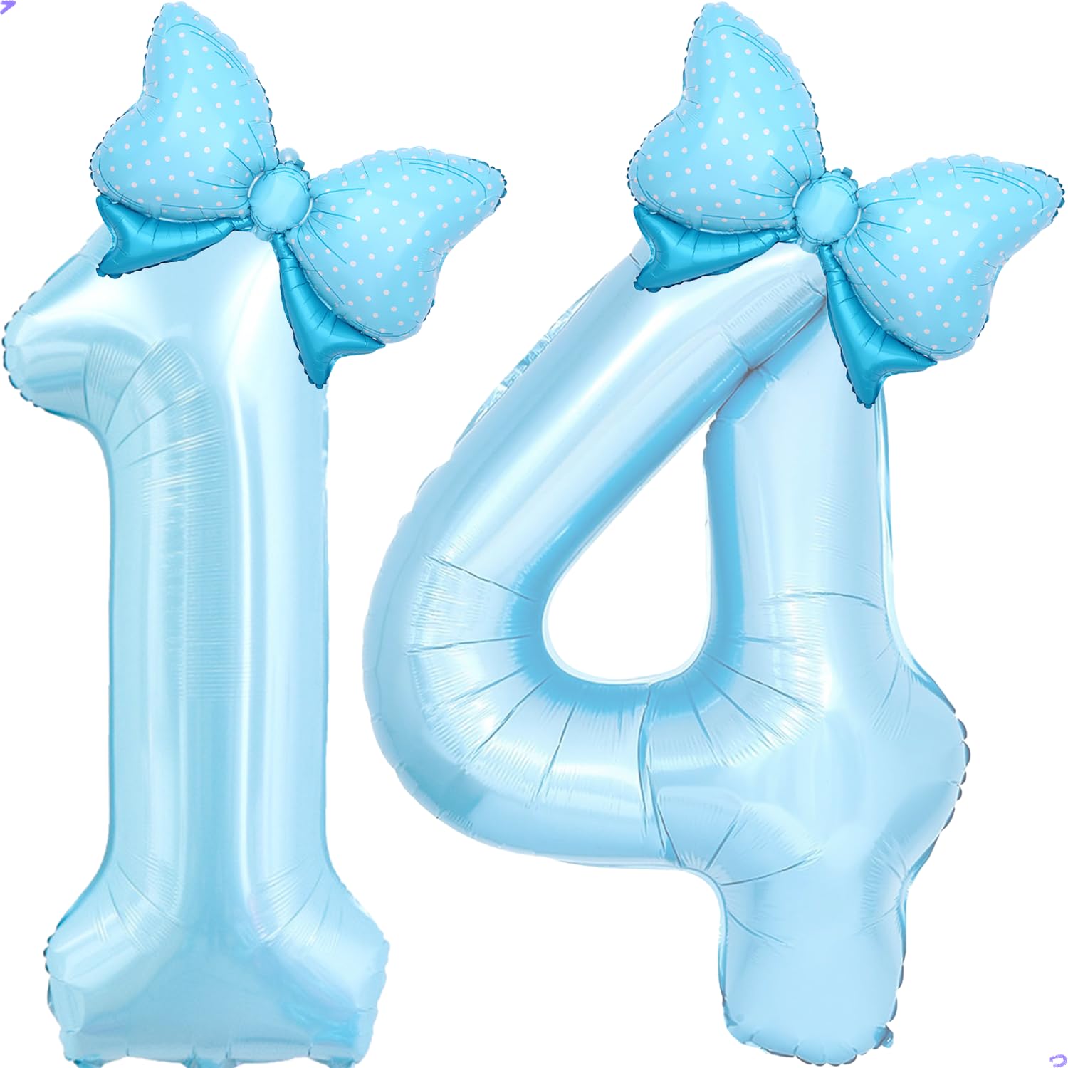 【Easy to Decorate】The blue bow 14 foil ballon has holes in the top that can be strung together and hung with the ribbon in the package. They also can be deflated with a straw to facilitate repeated balloon use. This foil balloon is suitable for inflating with helium or air for your 14th birthday party decorations for your daughter birthday