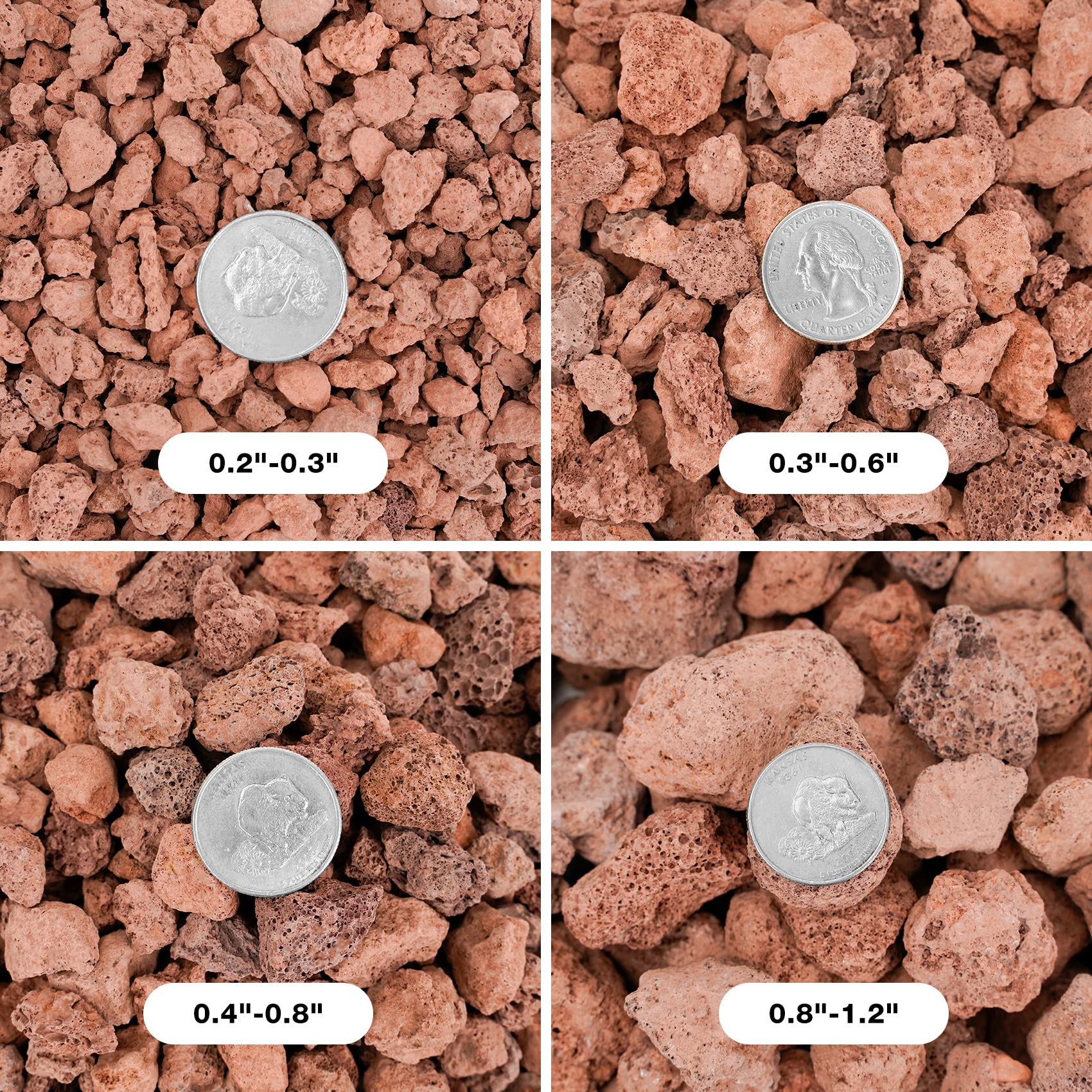 【A Variety of Sizes of Lava Rock for Your Choice】 - Sizes from 0.4"-0.8", 0.8"-1.2", 0.2"-0.3", 0.3"-0.6", 10 Pounds. Available in black or red with porous surface. No chemicals, fillers or colors added.