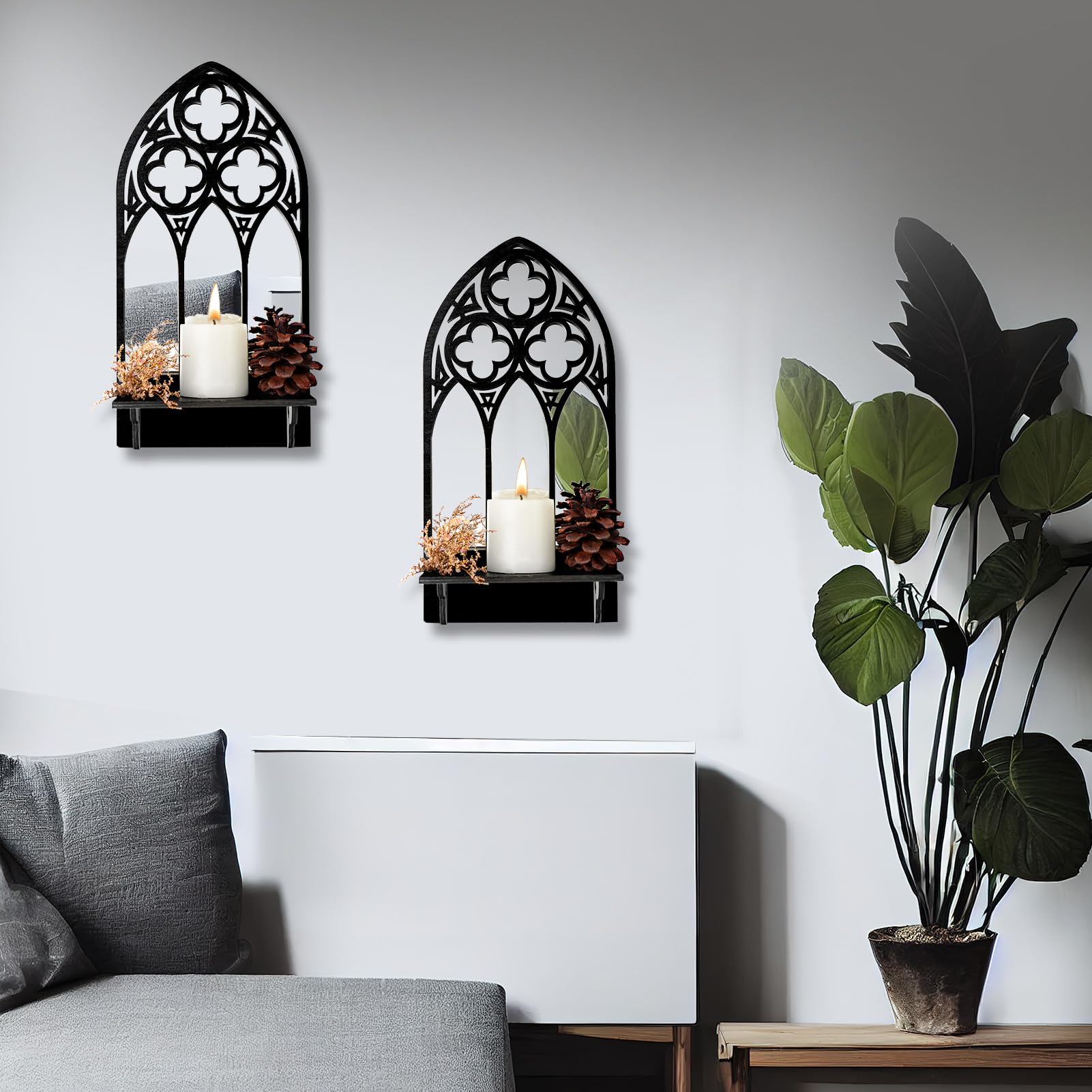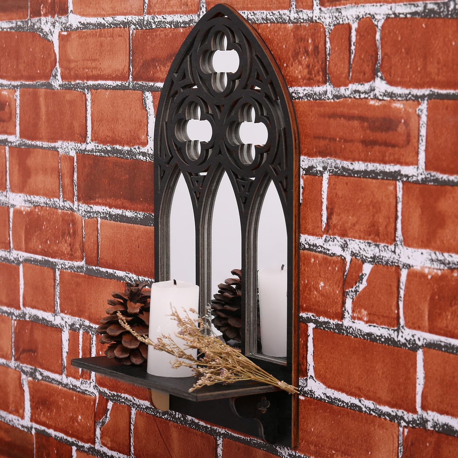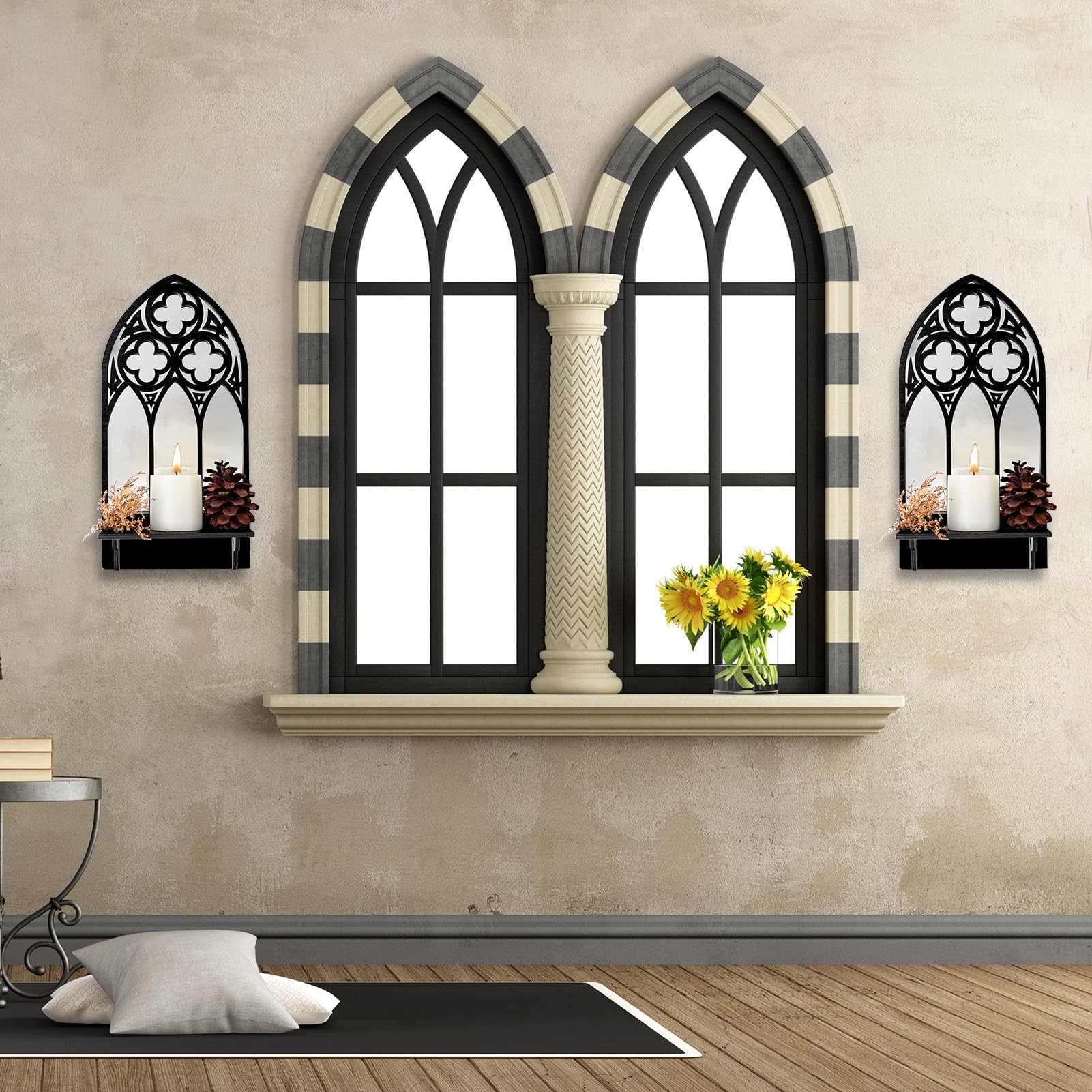 GOTHIC CANDLE SCONCE: Our wall sconce candle holder features window shape and gothic style design. It measures 11.7 x 5.9 inches, which features lightweight, easy to install. Add an eye-catching look to any space with this window shape pair of wall sconce candle holders.