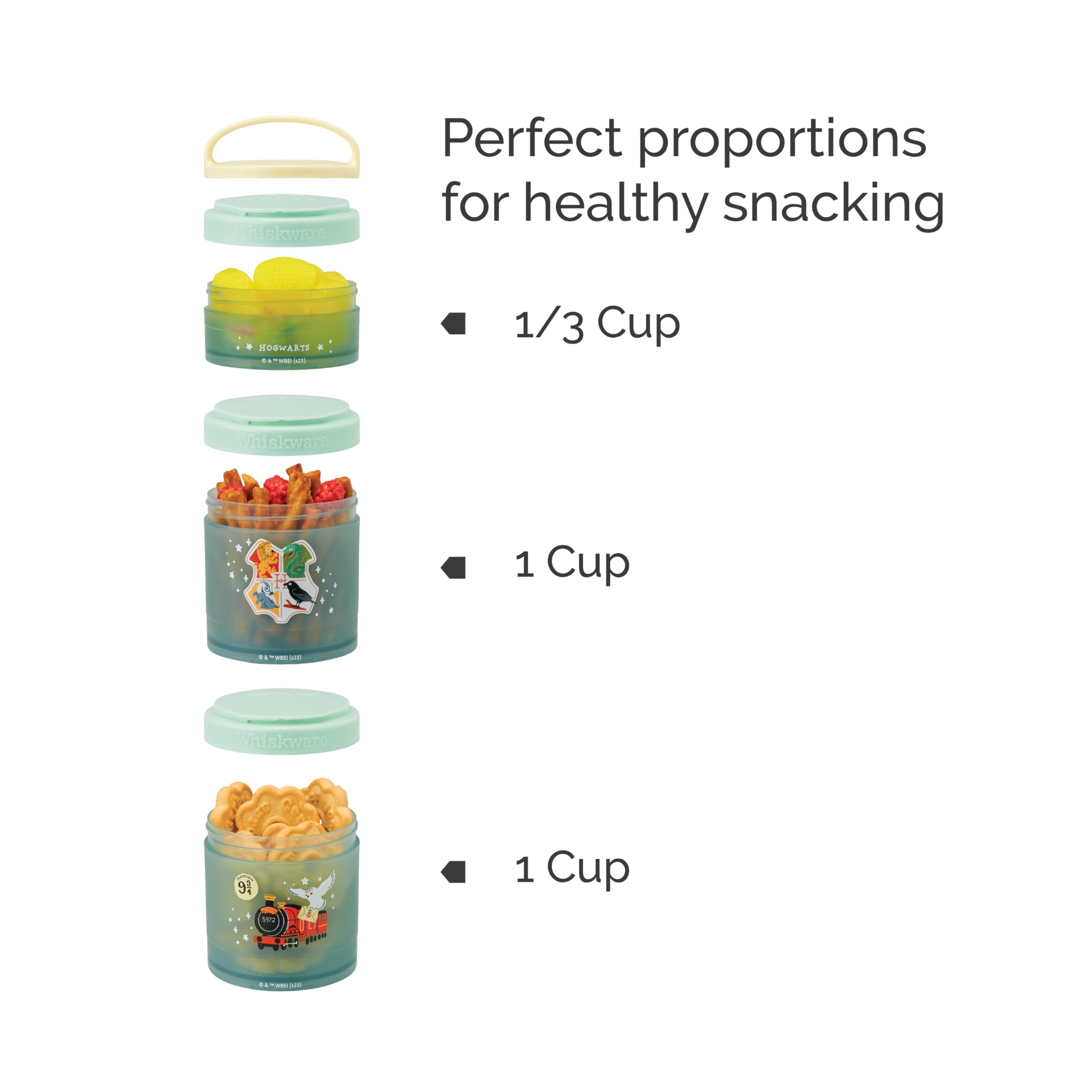 Durable, stackable snacking containers designed to make eating easy, fun, and mess free
