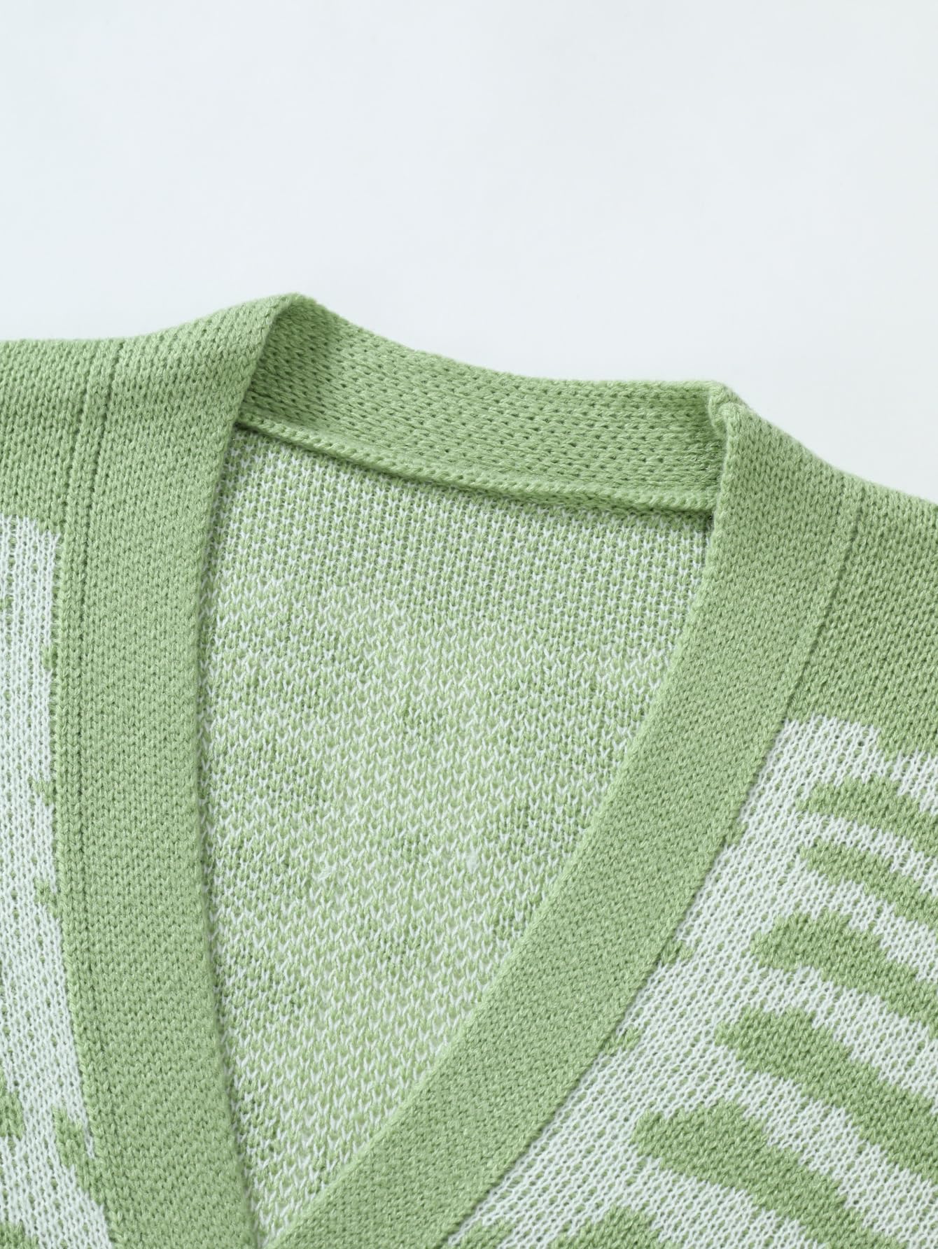 Features: skeleton pattern, button through front, v neck or open front, long sleeve, drop shoulder, knitted, knitwear, regular fit, makes you chic and cozy