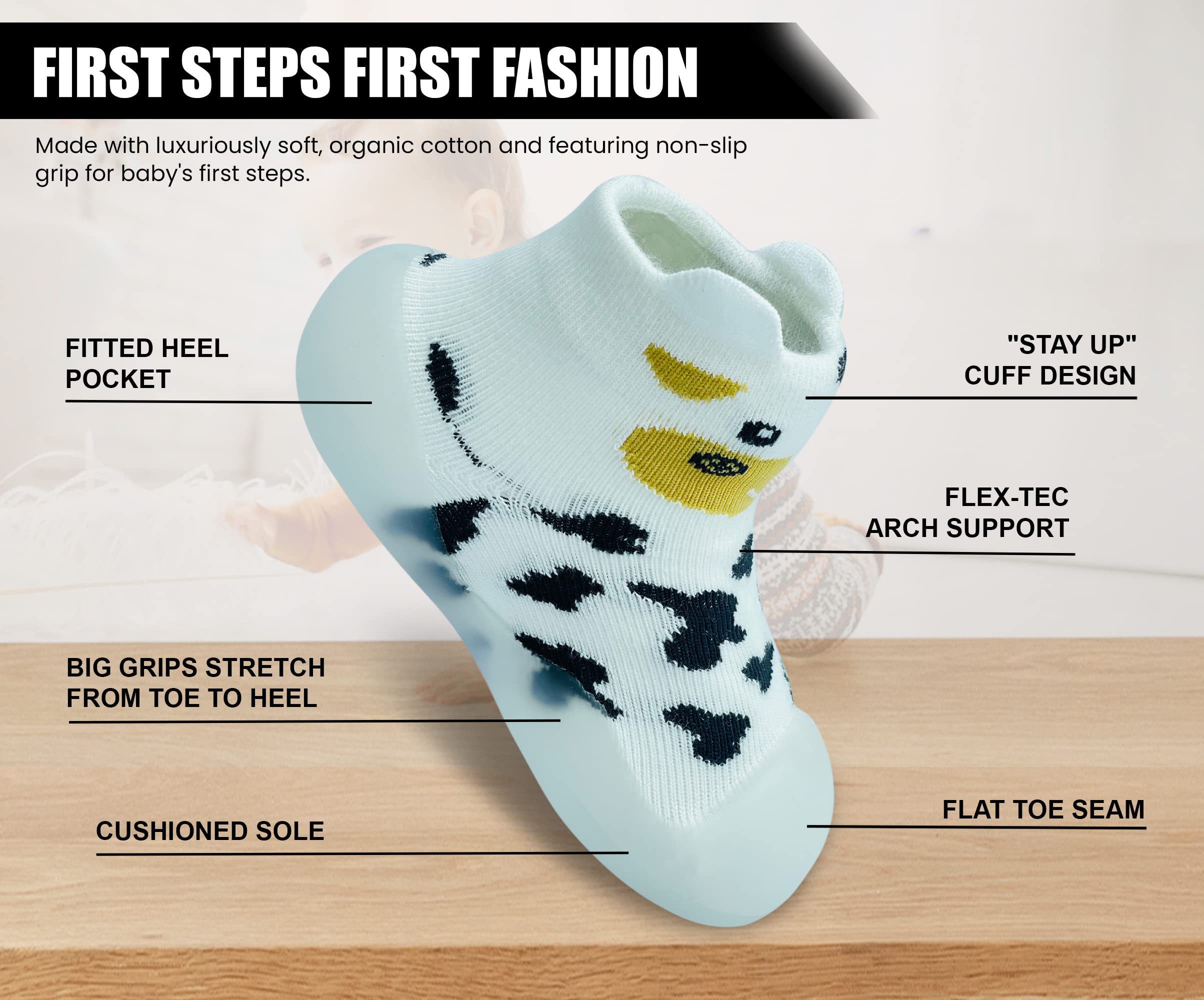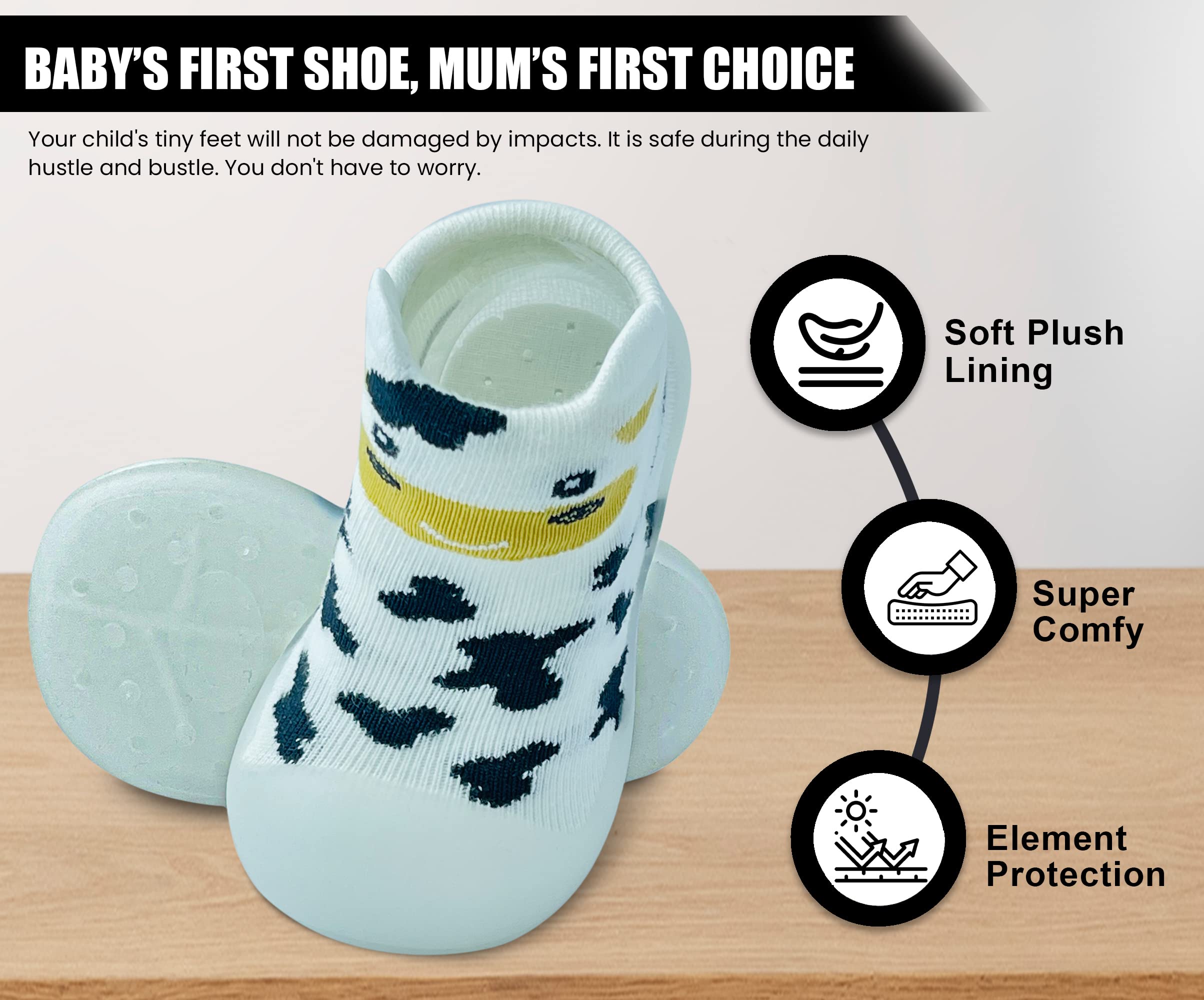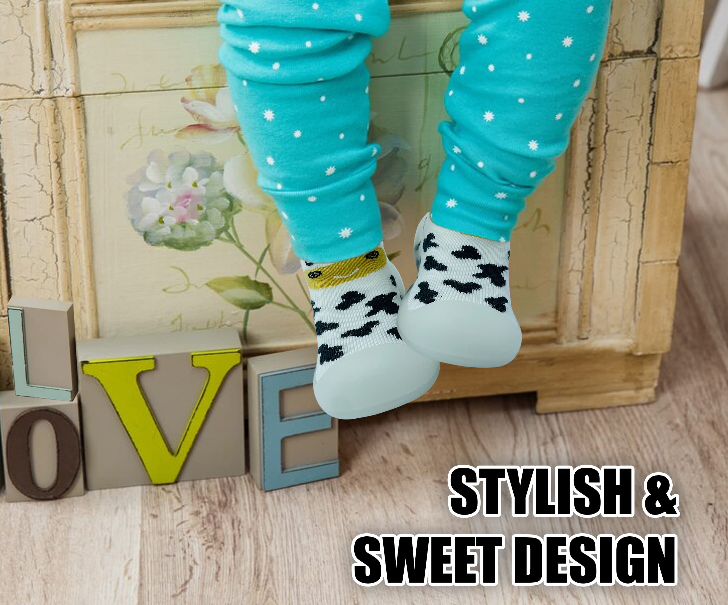NON SLIP - Sock shoe sole is made of non-slip silicone material. In addition, thanks to baby walking shoes design, it touches the ground flat. It allows your toddlers to walk safely on different surfaces. At the same time, baby sock shoes prevent damage from sharp objects on the ground.