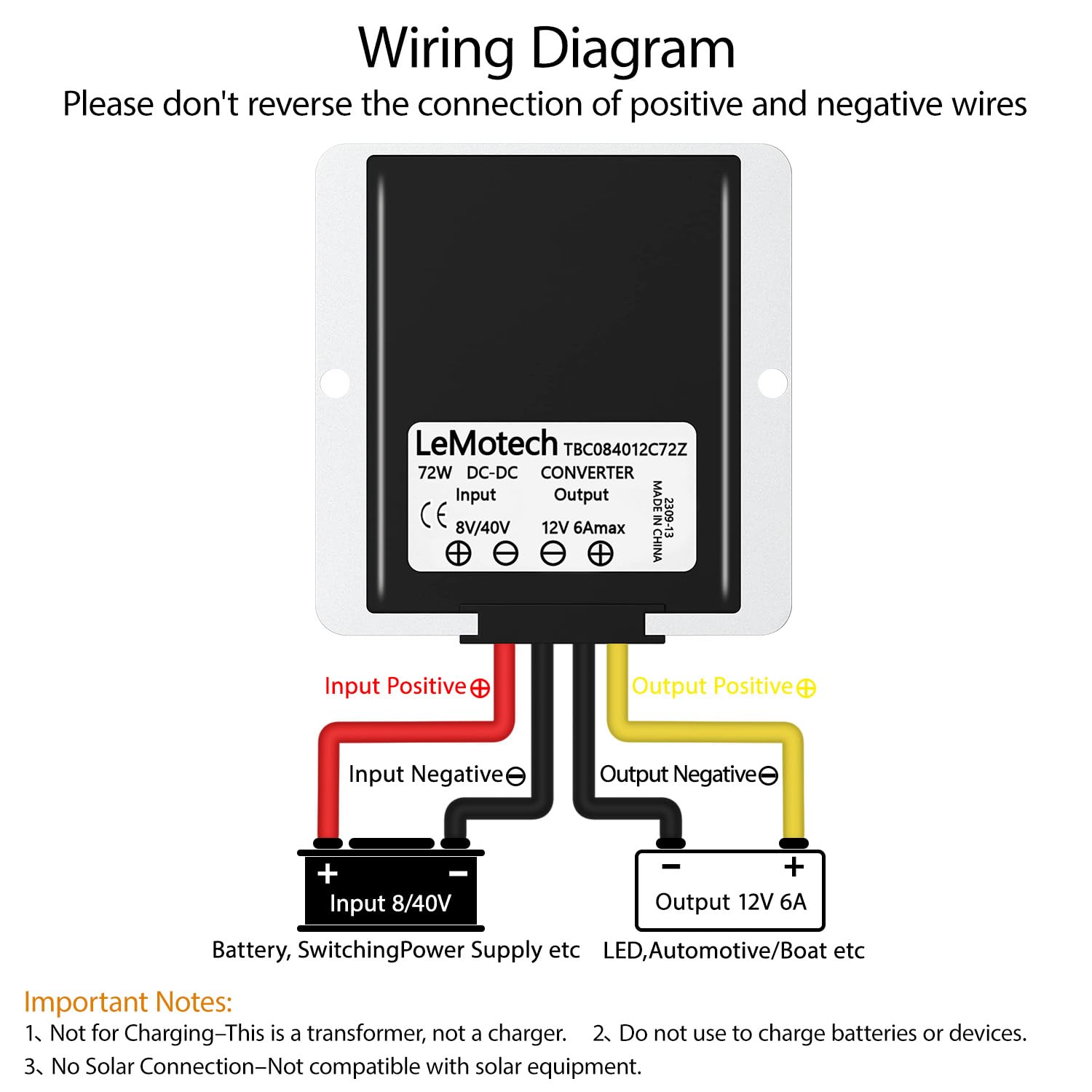 [ DC 8-40V to 12V Converter ] Input voltage range: DC 8-40V; Output voltage: 12V; Output current: 6A; Output power: 72W.