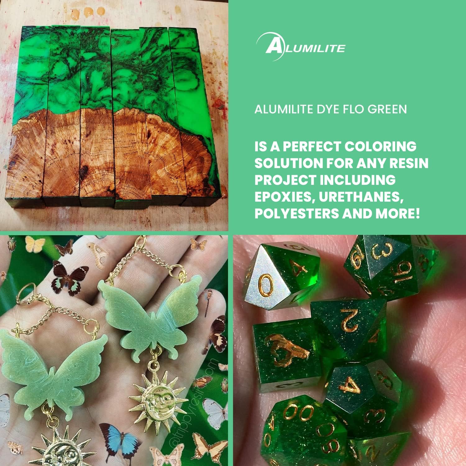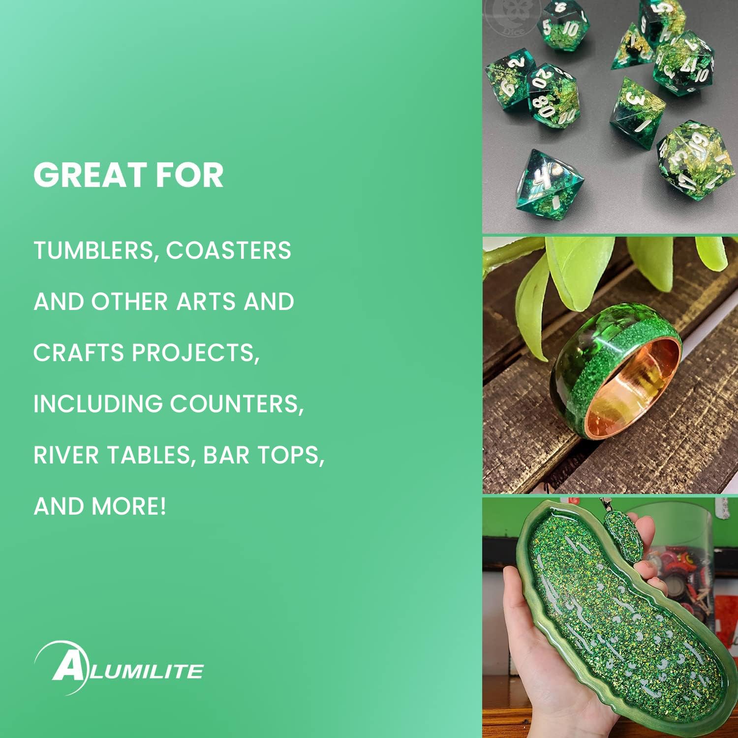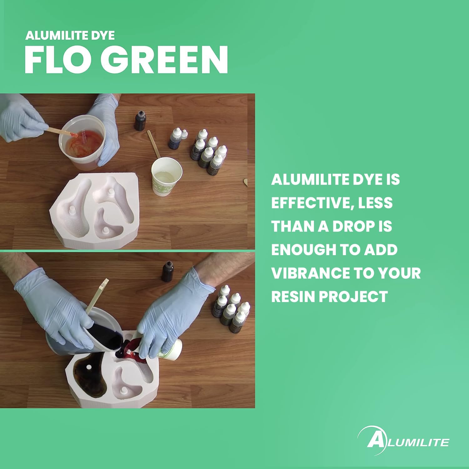 Resin Enhancement - Add Alumilite dyes to clear or opaque resins, or with epoxy for dynamic art and craft coatings, achieving translucent or solid colors for versatile use.