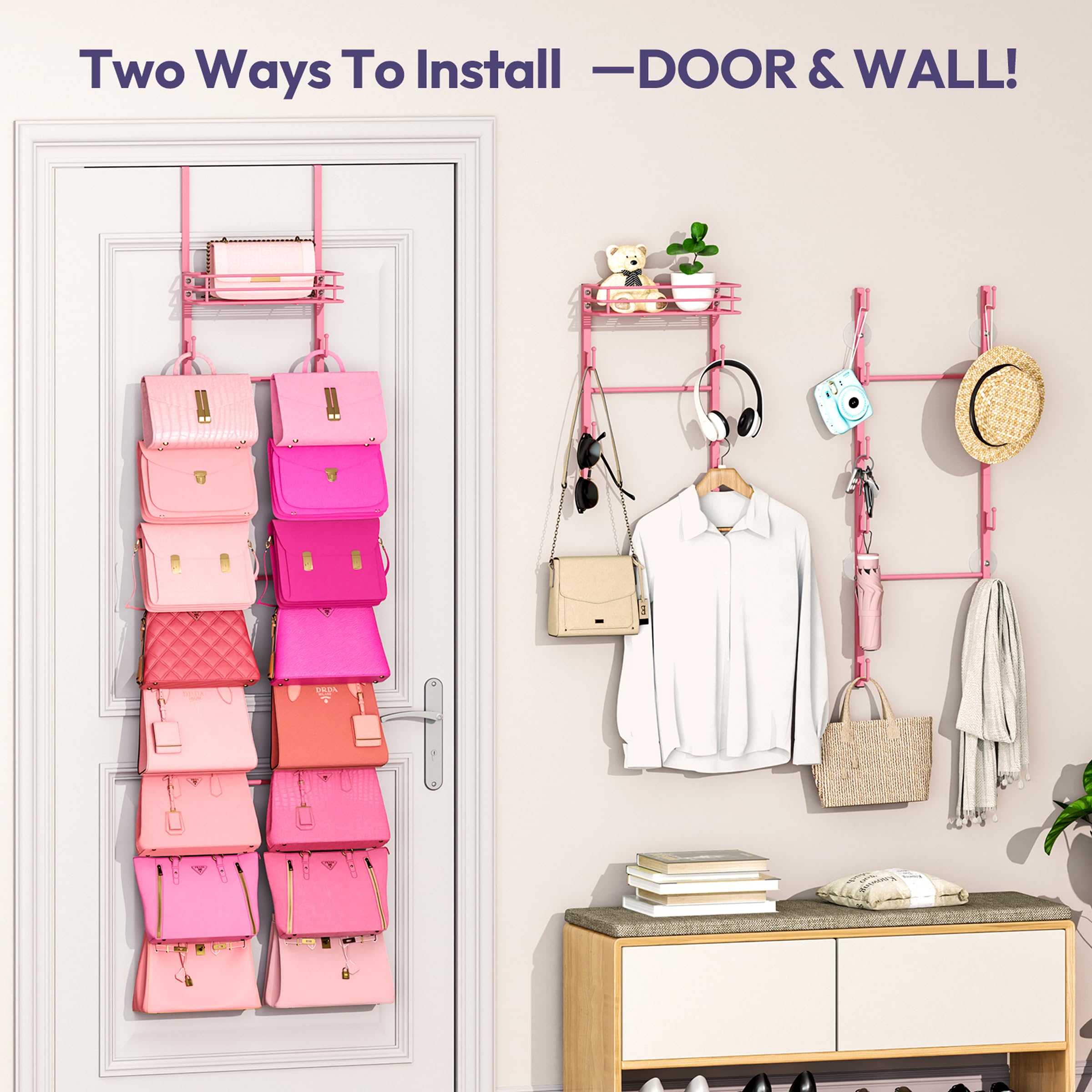 [Dual Installation Modes]: Choose what works for youβhang it over the door or mount it on the wall. This purse storage adapts to your space and style. Whether you're organizing everyday bags or weekend totes, this heavy-duty handbag storage system serves as a durable and elegant purse holder for homes, dorms, and studios