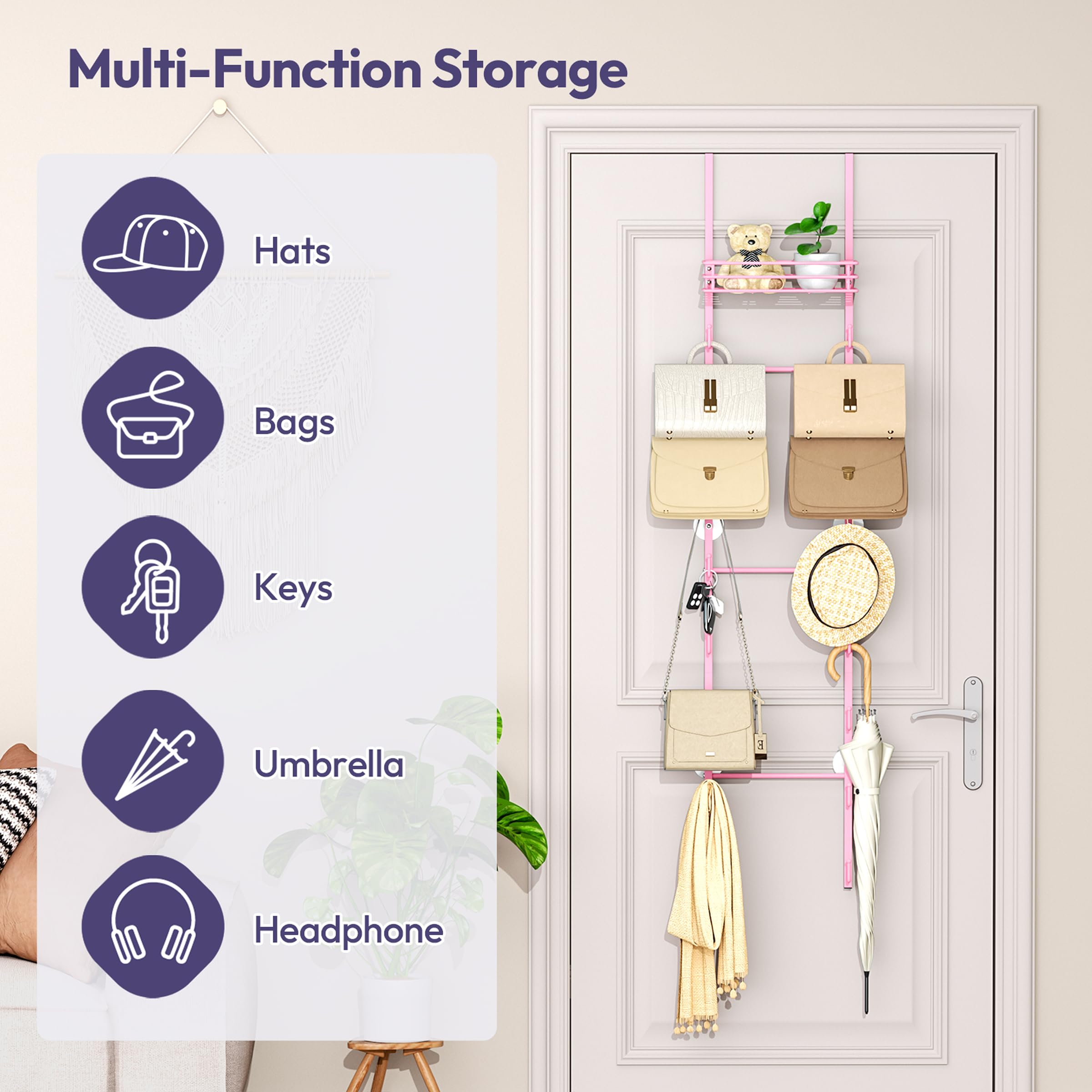 [Multi-Use Storage Option]: More than a handbag organizer, also work as hat rack, coat rack to stores hats, scarves, and even belts. Say goodbye to clutter with this functional purse rack, designed for those who love clean spaces. It's not just a rackβit's also a stylish purse shelf display that enhances any wall or door