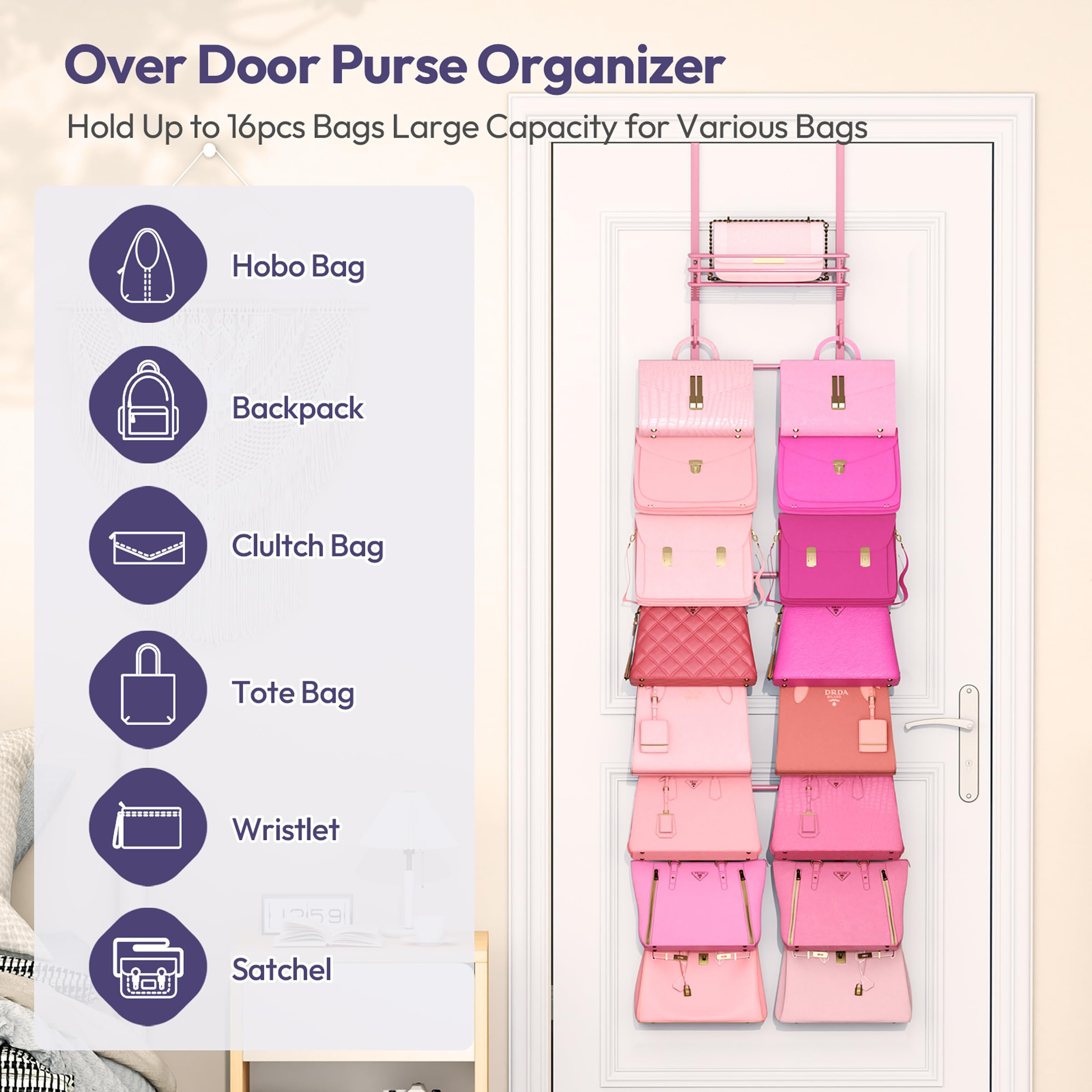 [Secure and Stable]: The over the door handbag organizer includes anti-sway adhesive pads prevents swinging or sliding. Use it as a purse holder for closet or a dependable vertical rackβit keeps everything in place, whether holding a small purse organizer or larger totes