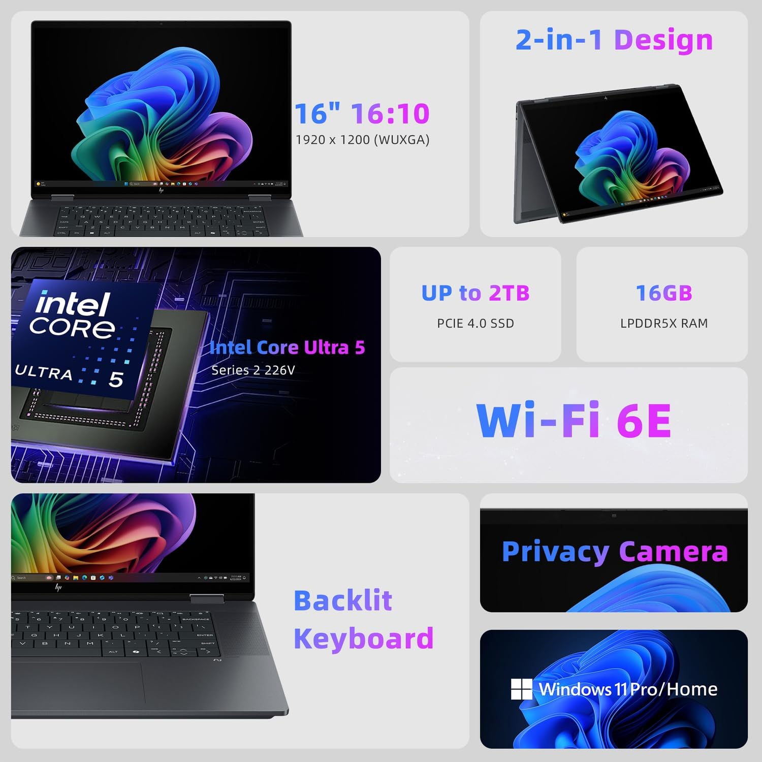 16" WUXGA Touchscreen & 2-in1 Design: Bring ideas to life on a vibrant 16-inch touchscreen (1920x1200 resolution) with IPS technology, 178° viewing angles, and Pen compatibility. The sleek 0.61-inch-thin flip design (4.36 lbs) adapts to any mode—work, create, or stream—while multitouch controls and edge-to-edge glass enhance usability