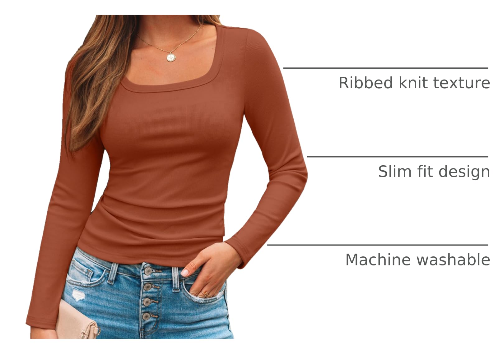 Flattering Slim Fit & Design:Designed with a modern square neckline and slim, body-conscious silhouette that elegantly accents your figure. The long sleeves and solid color offer a versatile, minimalist chic that serves as a perfect wardrobe staple
