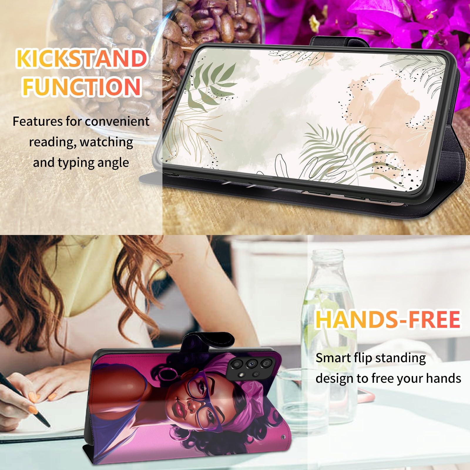 JANENFNA brand for Samsung Galaxy A53 5G Wallet Case with wristlet strap, features a stylish thin phone case to protect and style your phone all the time FEATURES: 1.Wristlet Strap - Exquisite and pratical, it can free your hand 2.Attractive Looking - Stylish beautiful graphics, make your phone look attractive 3.Function Practical Kickstand - Kickstand design with multiple viewing angle stand, free your hands 4.Wireless Charging - Slim wallet case that allows wireless charging 5.Large Space Keep Slim - 3 Card Slots + Money Pocket- carrying debit card, credit card, ID card, cash 6.Premium Materials - Hiqh-quality synthetic leather, soft, comfortable and protective 7. RFID Blocking - RFID technology application effectively shields the signals and keeps your personal information safe. 8.Safe Wallet - Magnetic closure is strong, hold your cards and money securely 9.Durable - The inner TPU case is firmly adhered to the outer wallet, you don't have to worry about it falling down MATERIALS: Synthetic leather PU & Hard PC PACKAGE CONTENT: 1x JANENFNA Wallet Case for Samsung Galaxy A53 5G RISK-FREE SHOPPING JANENFNA provide friendly easy-to-reach support in 24 hours. Easy replace or refund if you are not satisfied with our productsh.