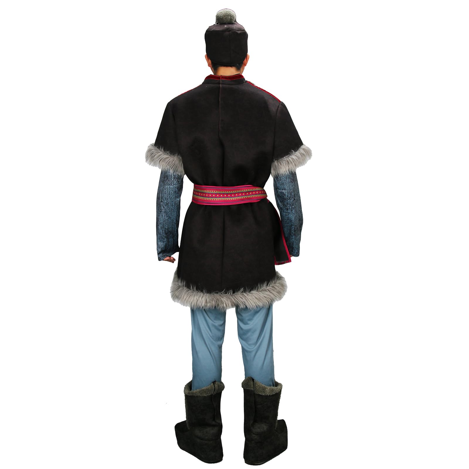 Material: Polyester. Deluxe Adult men cosplay costume faux fur tunic uniform ice harvester outfit with hat blue pants and boot covers.