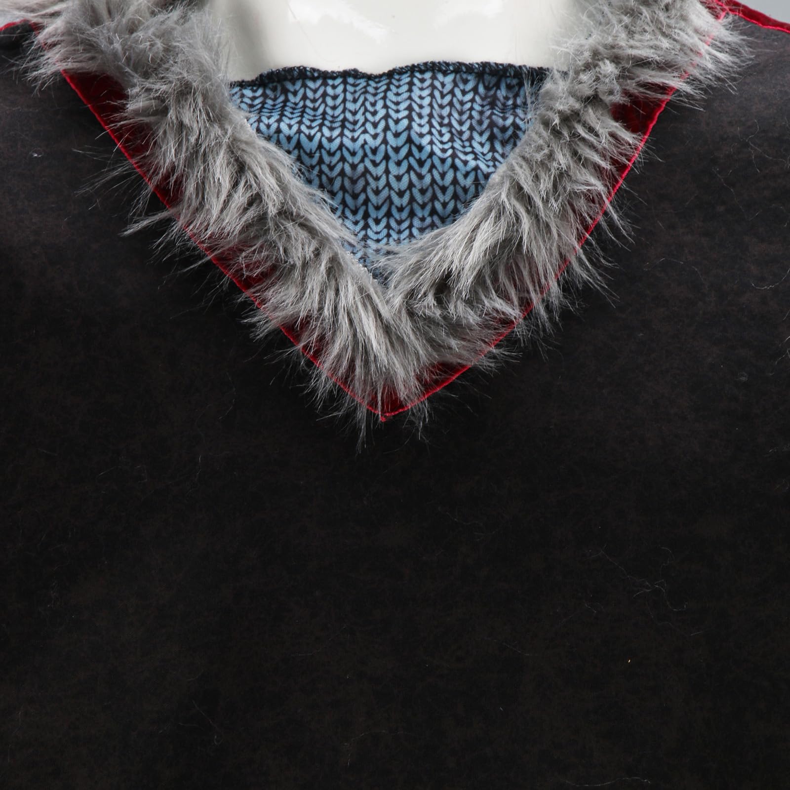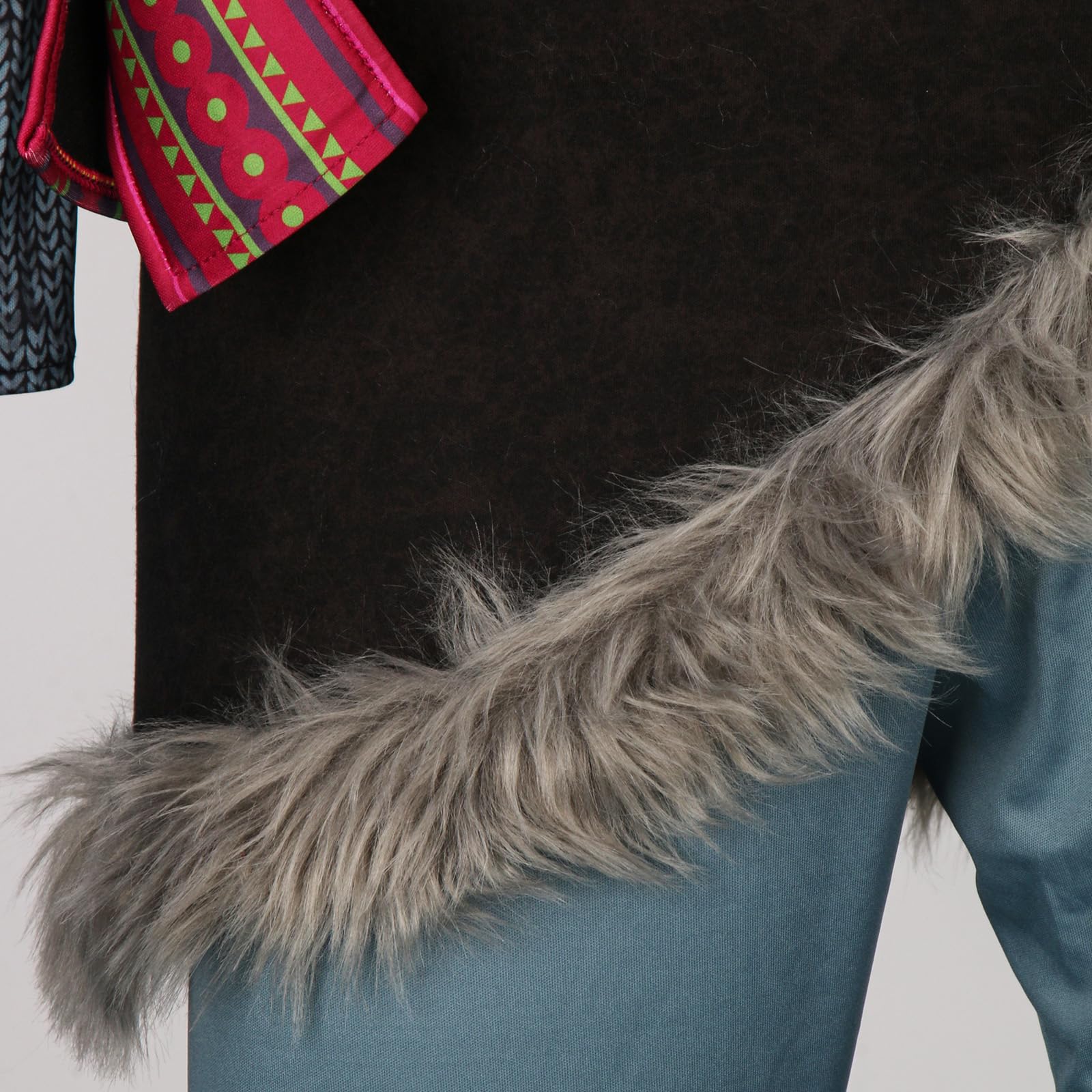 The collar, cuffs, and hem of the costume are featured with faux fur, keep warm.