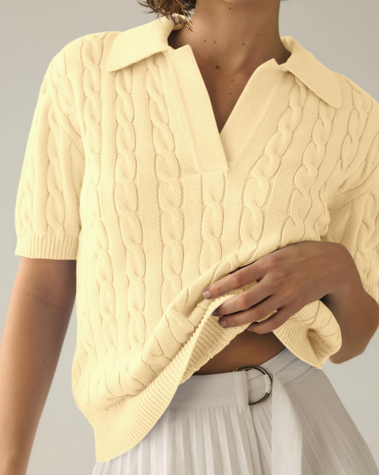 Material: Women's cable short-sleeved sweater top is made of soft and high-quality knitted fabric, soft and elastic, skin-friendly, sweat-absorbing and breathable, comfortable to wear.