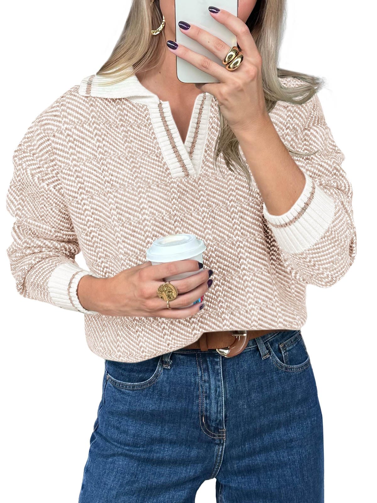 Style: Women's Short Sleeve Sweater/ Short Sleeve Stylish Sweater Sweater/ Pullover Top/ V Neck/ Lapel Neck Sweater/ Super Soft Hand/ Plain Color/ Ribbed Neck and Hem Detail/ Loose Relaxed Fit/ Casual Retro Cute Style.