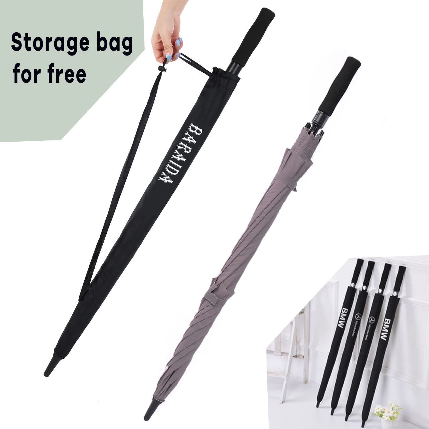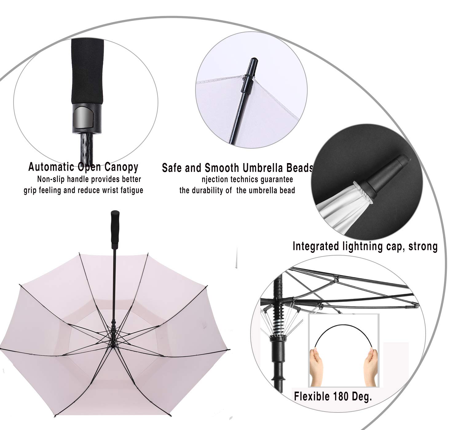 ☂️STURDY GOLF UMBRELLA: The golf umbrella made of fiberglass umbrella support, lightweight and durable. 210T water repellent pongee fabric canopy allows you to spin it gently to dry it like a gentleman, well waterproof. Come with a protective sleeve, help for good storage.