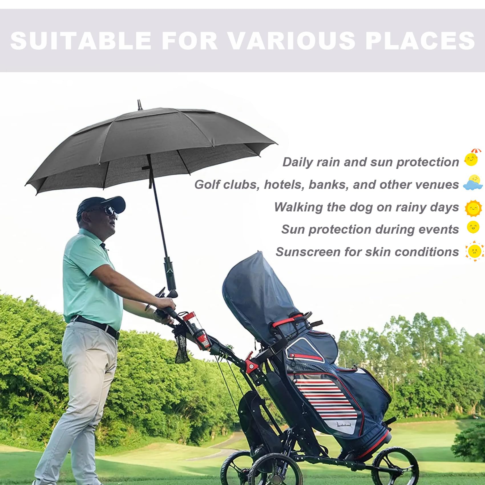 ☂️WINDPROOF GOLF UMBRELLA: The double-canopy design and fiberglass frame will ensure that your umbrella is VIRTUALLY WINDPROOF. Wind will simply not break it. The double-canopy design creates a vent during where wind can pass through, making the umbrella much easier to handle in harsh conditions.