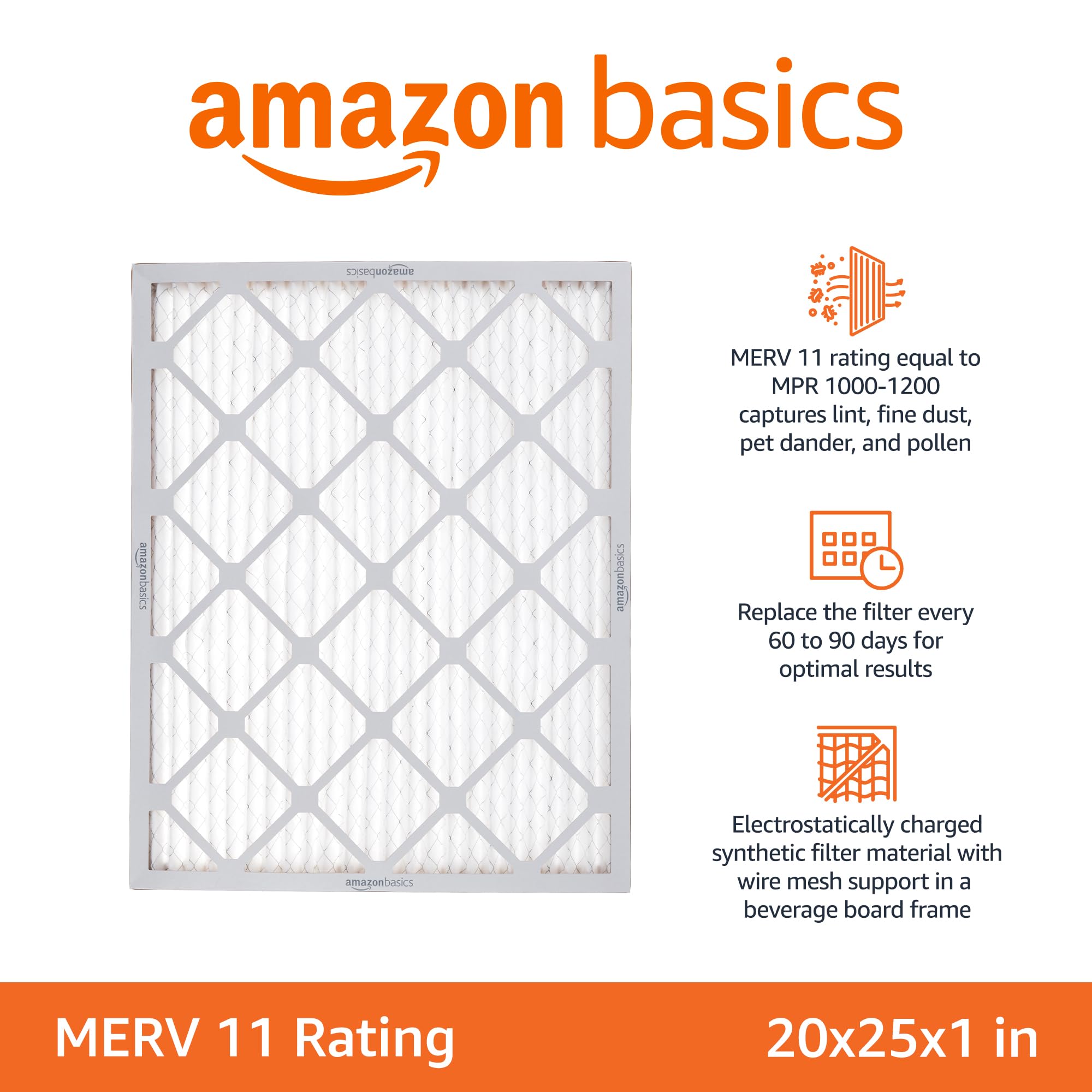 Product Description Designed to capture household irritants and promote furnace efficiency, this 20x25 air filter is ideal for maintaining a clean and healthy indoor environment. The home air filter features a beverage board frame, wire mesh support, and electrostatically charged synthetic filter material. Change your ac air filter every 60 to 90 days for optimal results and to sustain the efficiency of your HVAC system. From the Manufacturer Amazon Basics