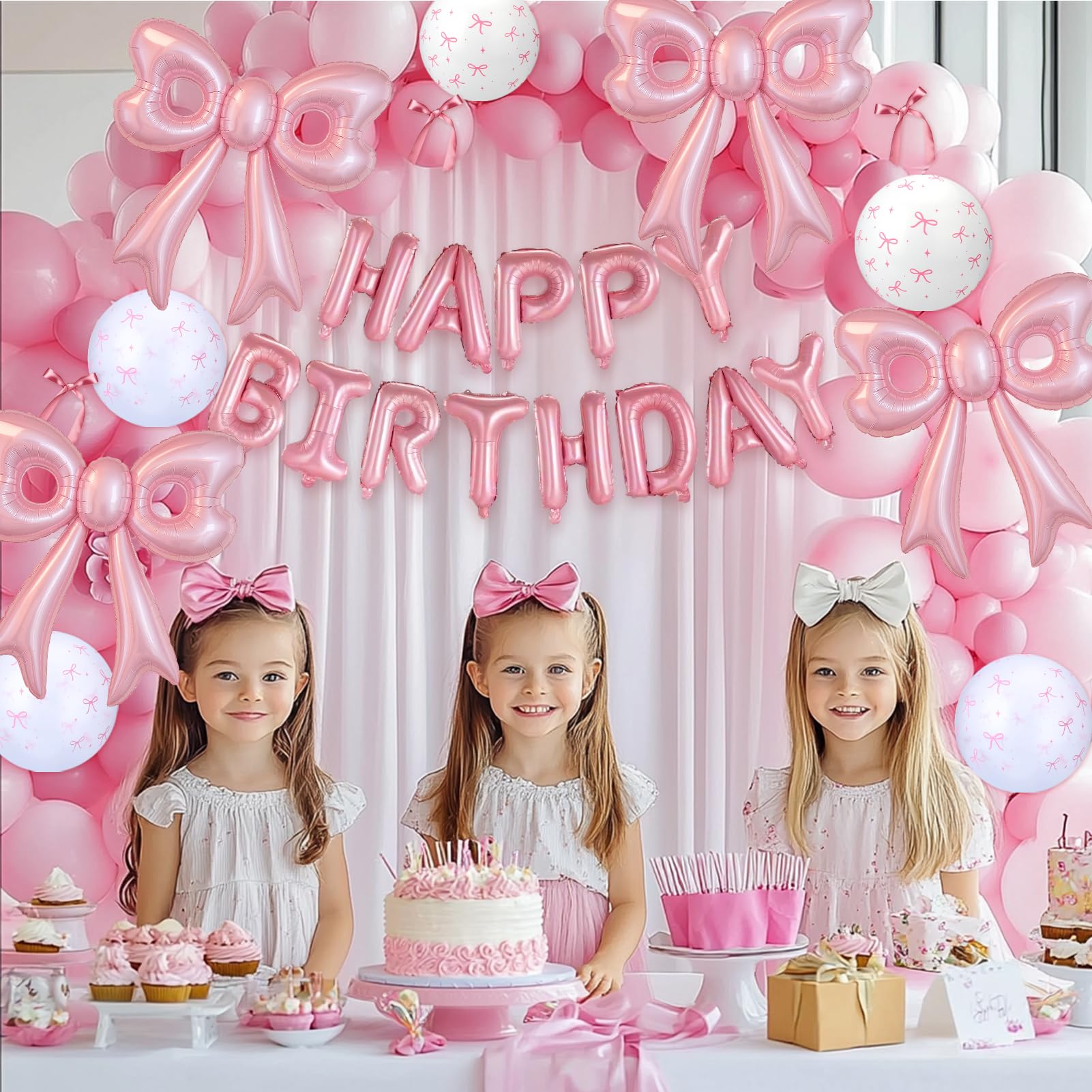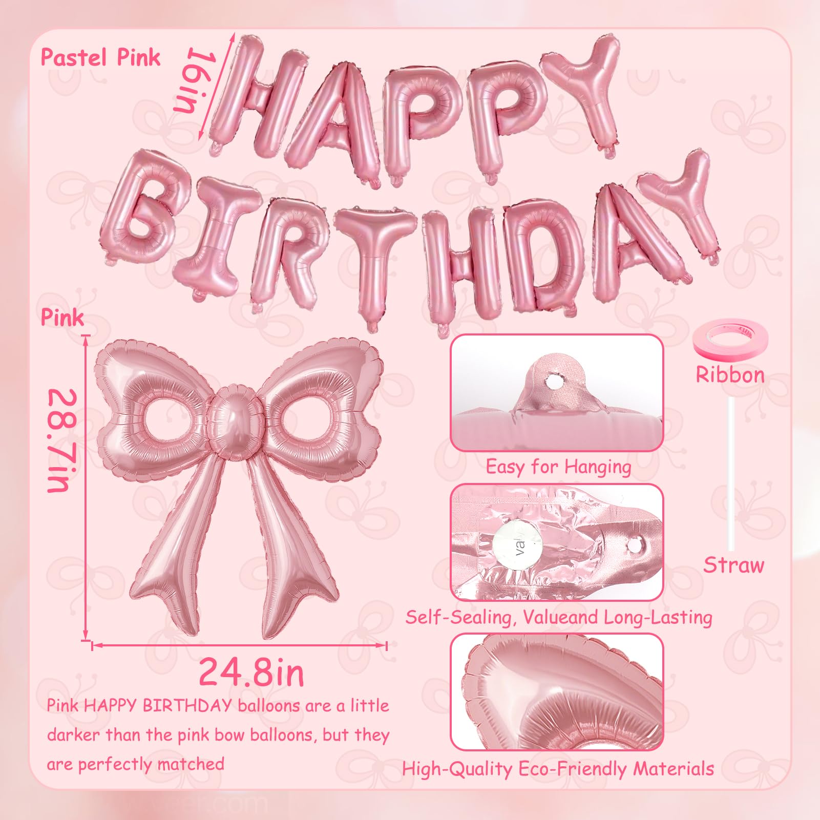 Pink Happy Birthday Balloons: Come on baby! Let's go to a pink dream birthday party! You will get 2 pcs pink bow balloons, size: 31.5x 30 inch, 1 pcs 16in pink HAPPY BIRTHDAY balloon. Package comes with 10m/ 32.8ft ribbon and 1pcs inflation straw. The novel pairing will add some creativity to the decorations of your pink birthday party.