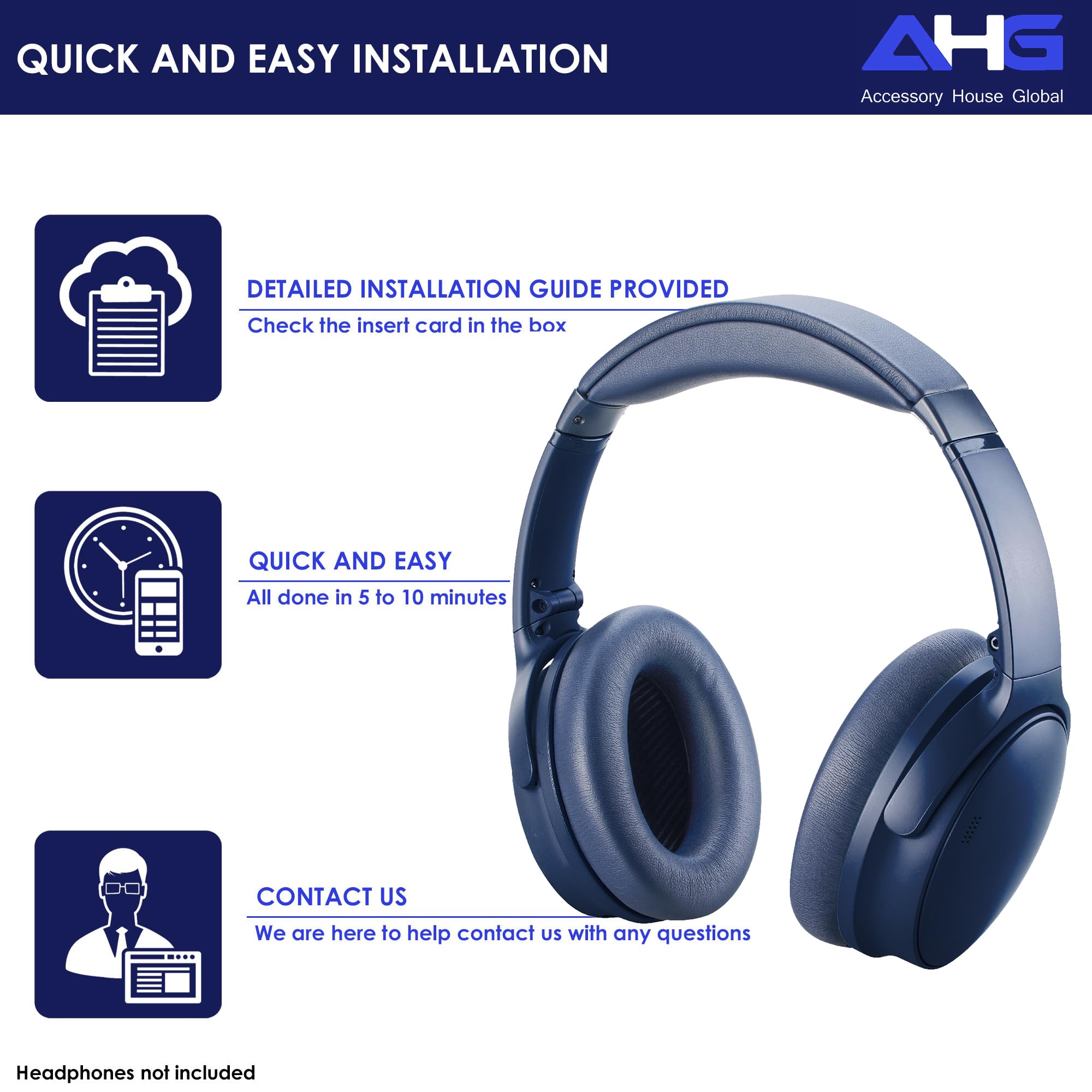 EFFORTLESS INSTALLATION IN MINUTES! - Give your qc35 / qc35 ii / QCSC / QCSE / QC45 headphones a fresh new feel in no time! These quietcomfort 45 / 35 / 35 ii / SC/ SE replacement ear pads are designed for a quick and hassle-free installation. Simply follow our easy step-by-step video guide—found on the insert inside the AHG Accessory House Global box—and restore your quietcomfort wireless headphones to like-new condition in just minutes!