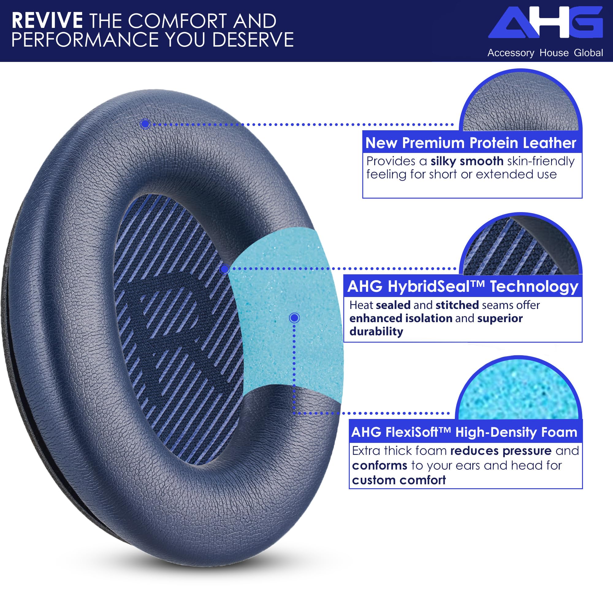 REVIVE YOUR qc 35 / qc 35 ii etc SOUND WHILE INCREASING DURABILITY! - Rediscover the audio excellence you love with AHG Accessory House Global quietcomfort 45 replacement ear pads. Designed to minimize sound leakage and ensure a secure, snug fit, these ear pads enhance both comfort and performance. Our exclusive HybridSeal technology combines precision heat-sealing and reinforced stitching, preventing splitting, improving durability, and restoring optimal noise-canceling performance.