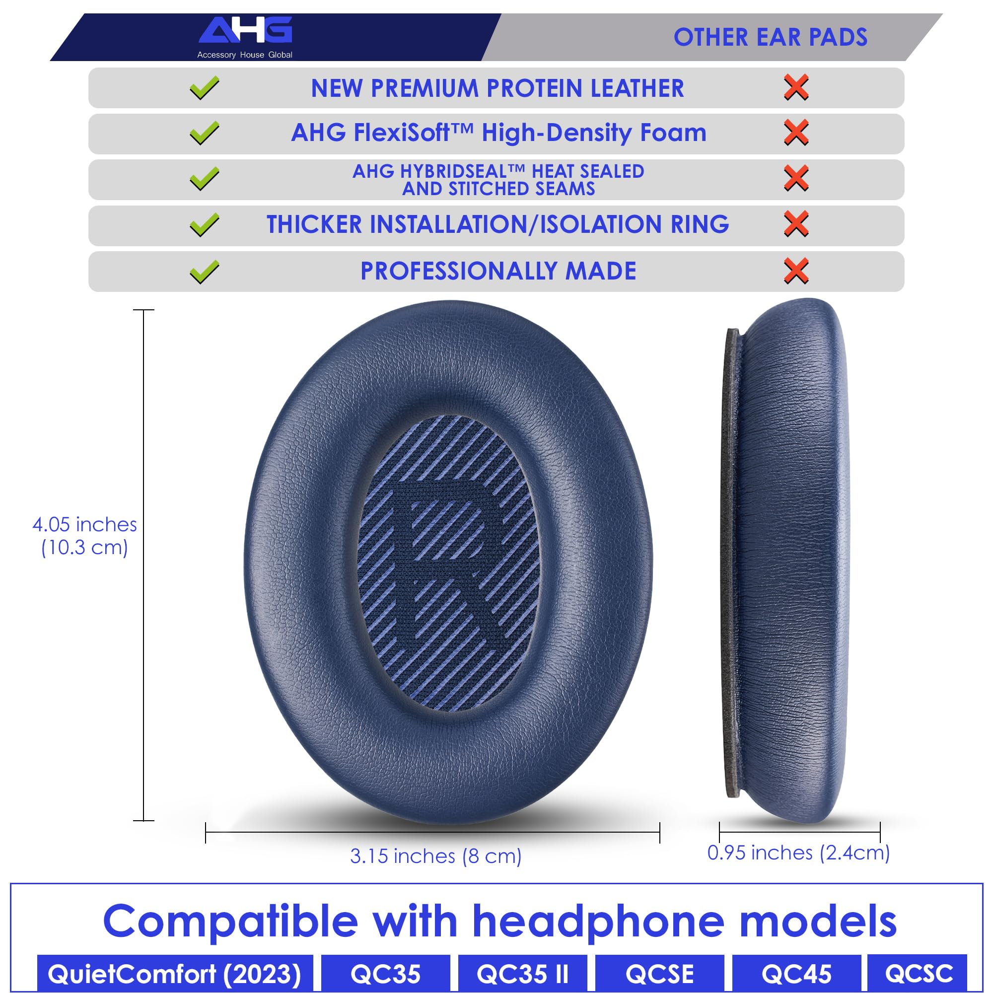 HAPPY EARS, HAPPY LISTENING! - Say goodbye to discomfort from worn-out QuietComfort earpads. AHG Accessory House Global QC45 / QCSC / QCSE / QC35 ii / QC35 replacement ear pads feature FlexiSoft high-density foam and premium protein leather that gently molds to your ears, delivering personalized, all-day comfort for an immersive listening experience
