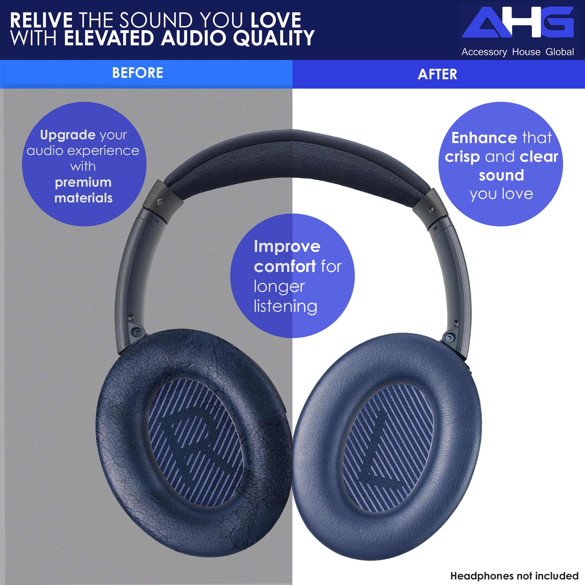MAKE YOUR qc quietcomfort HEADPHONES GREAT AGAIN! - Don’t let your expensive quietcomfort 35 / quietcomfort 35 ii / quietcomfort 45 / quietcomfort sc / quietcomfort se headphones lose their edge. Revive, enhance, and upgrade them with AHG Accessory House Global premium replacement ear pads. Experience restored comfort, superior performance, and immersive sound—just like new!