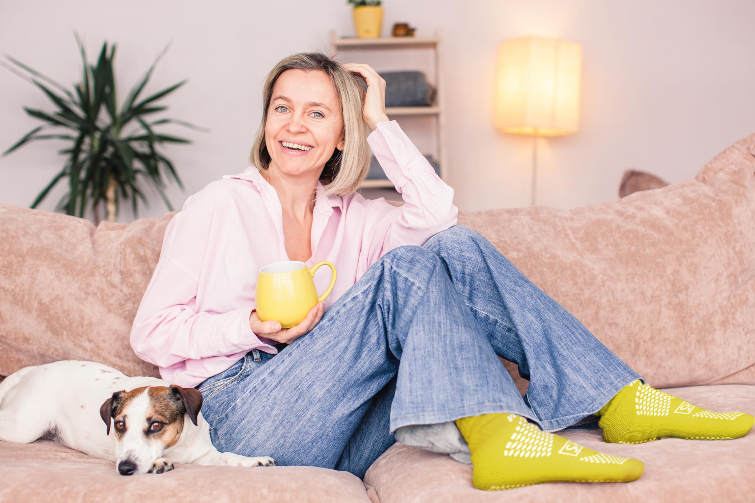 Premium Quality: The grip socks for women and men slipper socks are unisex grip socks designed with a combination of premium grade polyester and spandex knit materials. Along with providing complete comfort, the non slip socks for elderly feature loops on the inside for an extra snug fit.