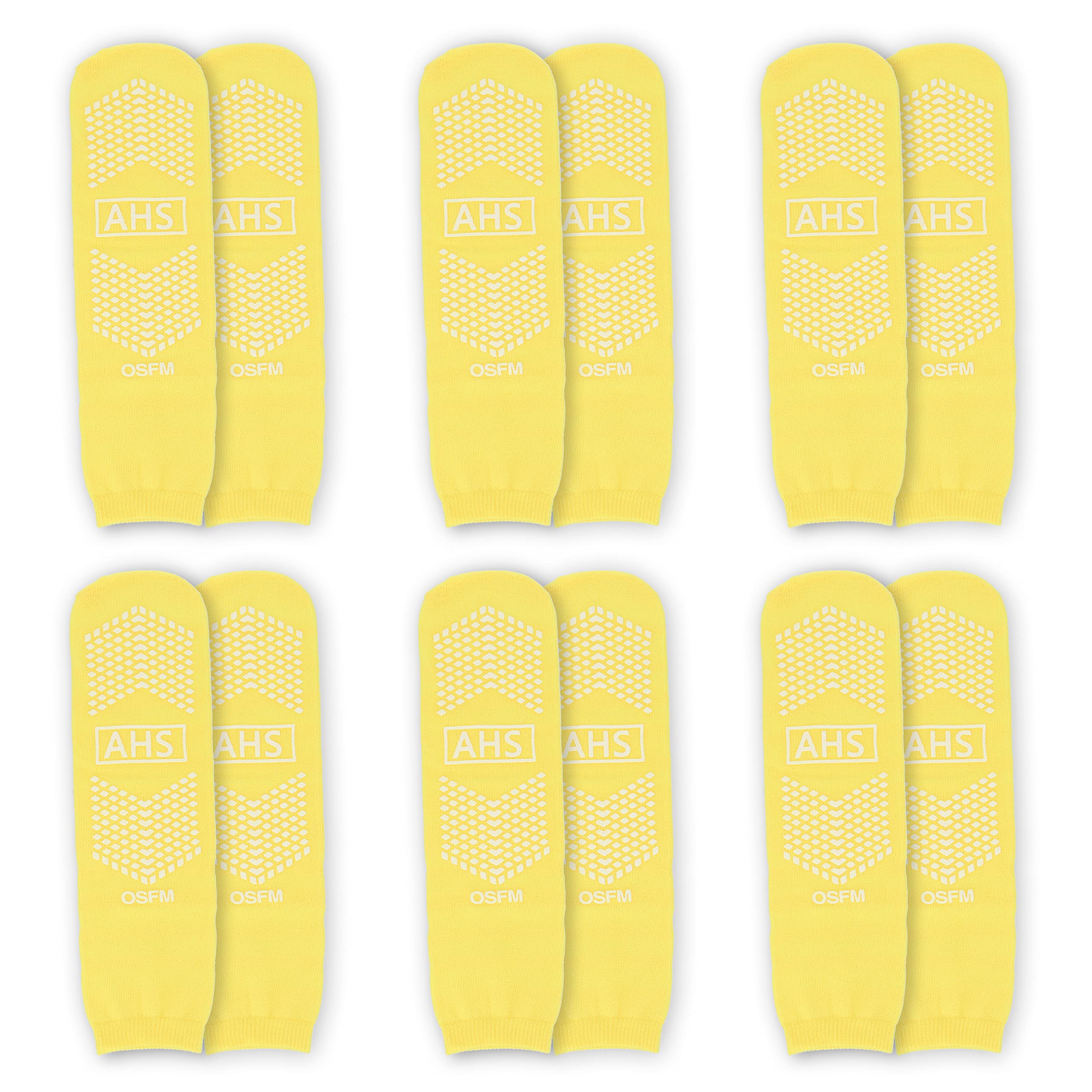 Product Specifications: The Hospital Slipper Socks are available in a single size that fits most. They are yellow in color and come in a pack of 6 pairs.
