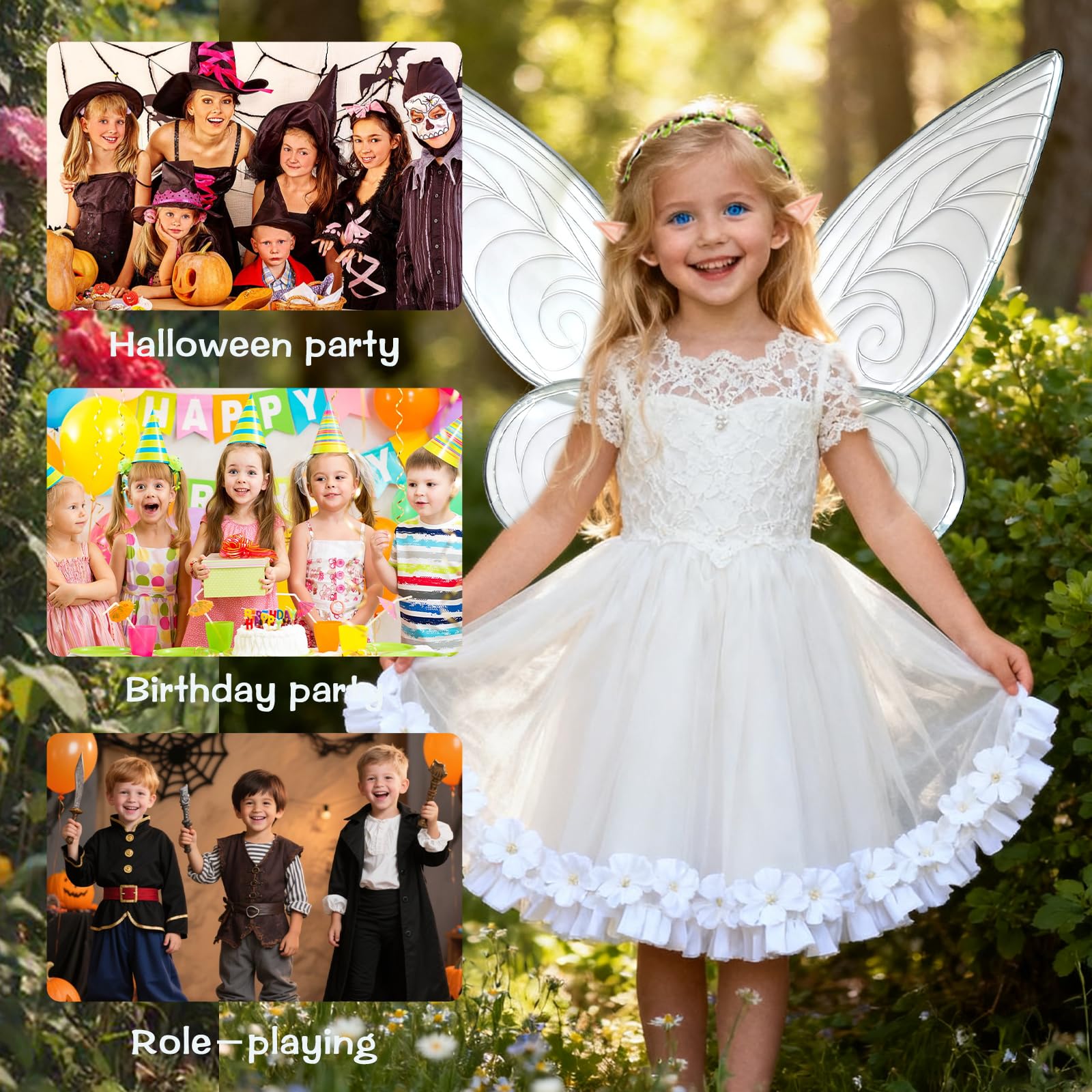 Adorable Fairy Accessories Included:Fairy wand sparkles with every twirl, while the flower crown and elf ears add whimsical charm—perfect for completing your fairy costume look.
