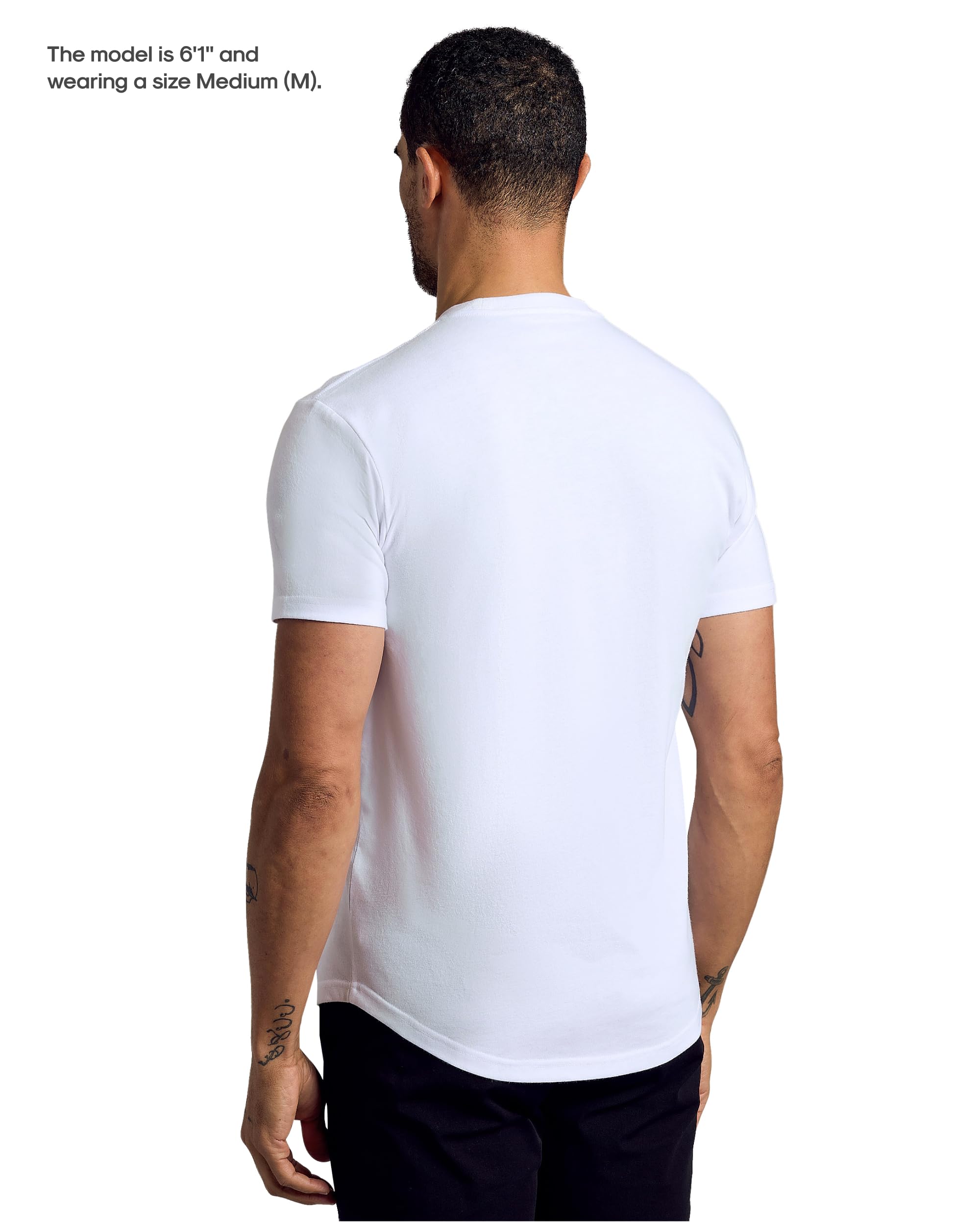 BUTTERY-SOFT COMFORT: Made with a 60% combed ringspun cotton and 40% polyester blend, these mens curved hem t shirts deliver lightweight softness, breathability, and a hint of stretch for all-day ease.