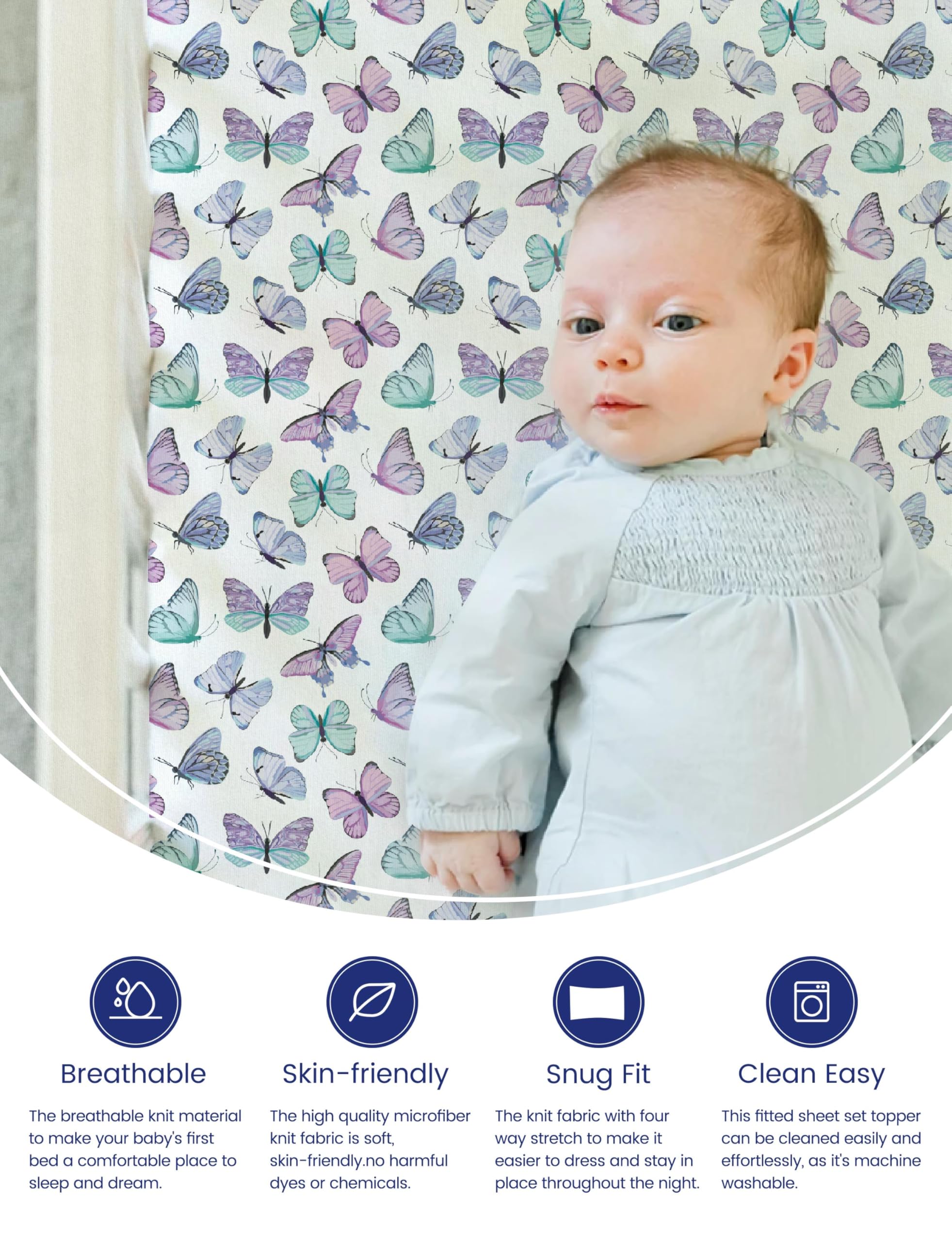TotAha Soft Crib Sheets Girl-Hypoallergenic, Silky Comfort, Buttery Soft, Calming Effect, Premium All-Season Jersey-Knit Sheets, 9'' Extra Deep Pocket, Purple Butterfly