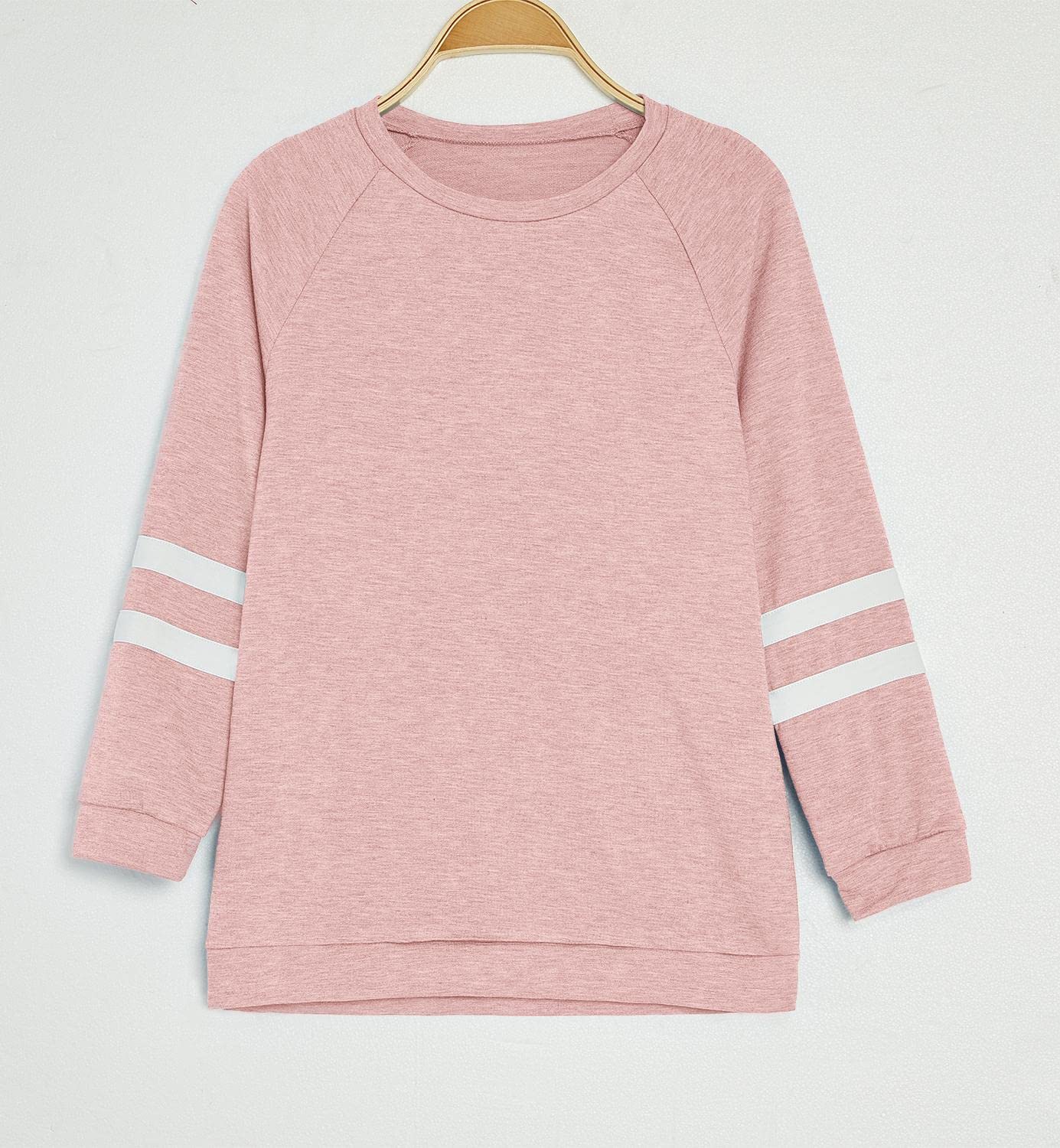 FEATURE: crewneck sweatershirt, long sleeve, striped design on the sleeves, loose fit style, cozy and chunky material, pullover hoodies for girls hip length long sleeve tunic shirts