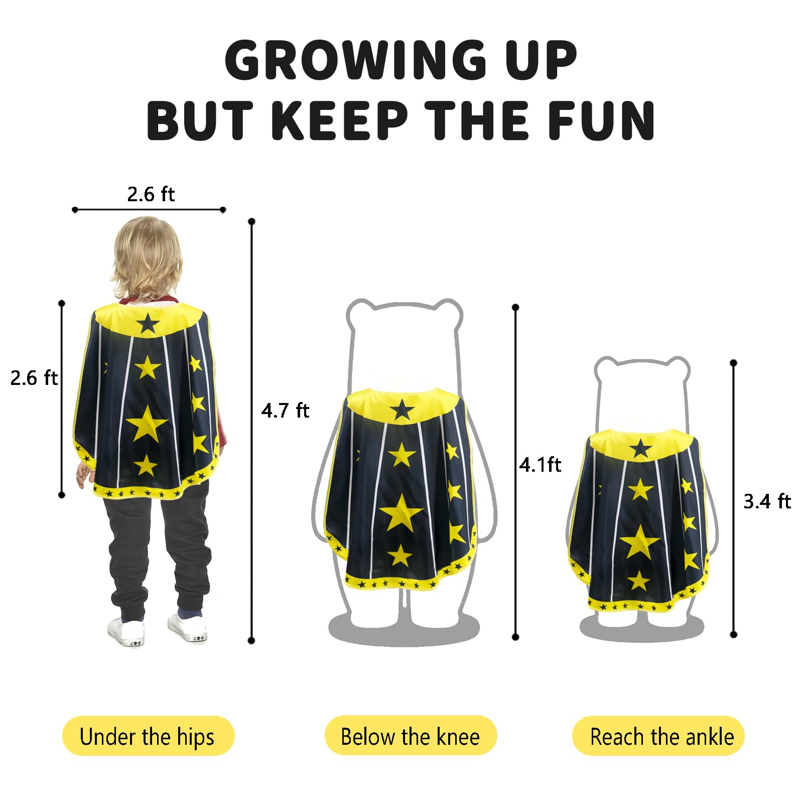 STAR SUPERHERO POWERS - Our super hero capes are endowed with the power of the stars, Strong&Fast&Smart&Brave, allowing them to fly freely in the universe and save people in distress at any time. Let your kiddoβs imagination run wild&free in our superhero costume set.