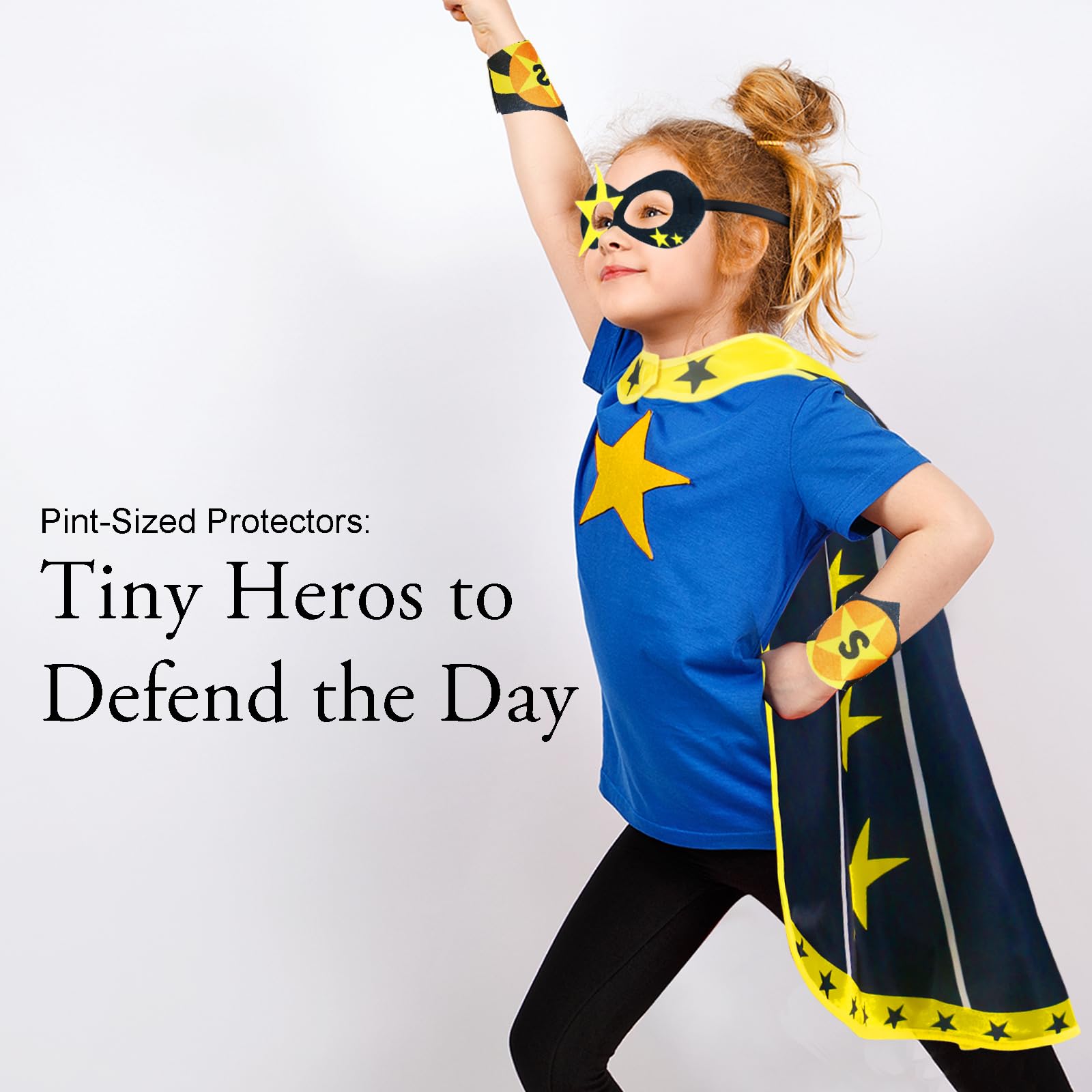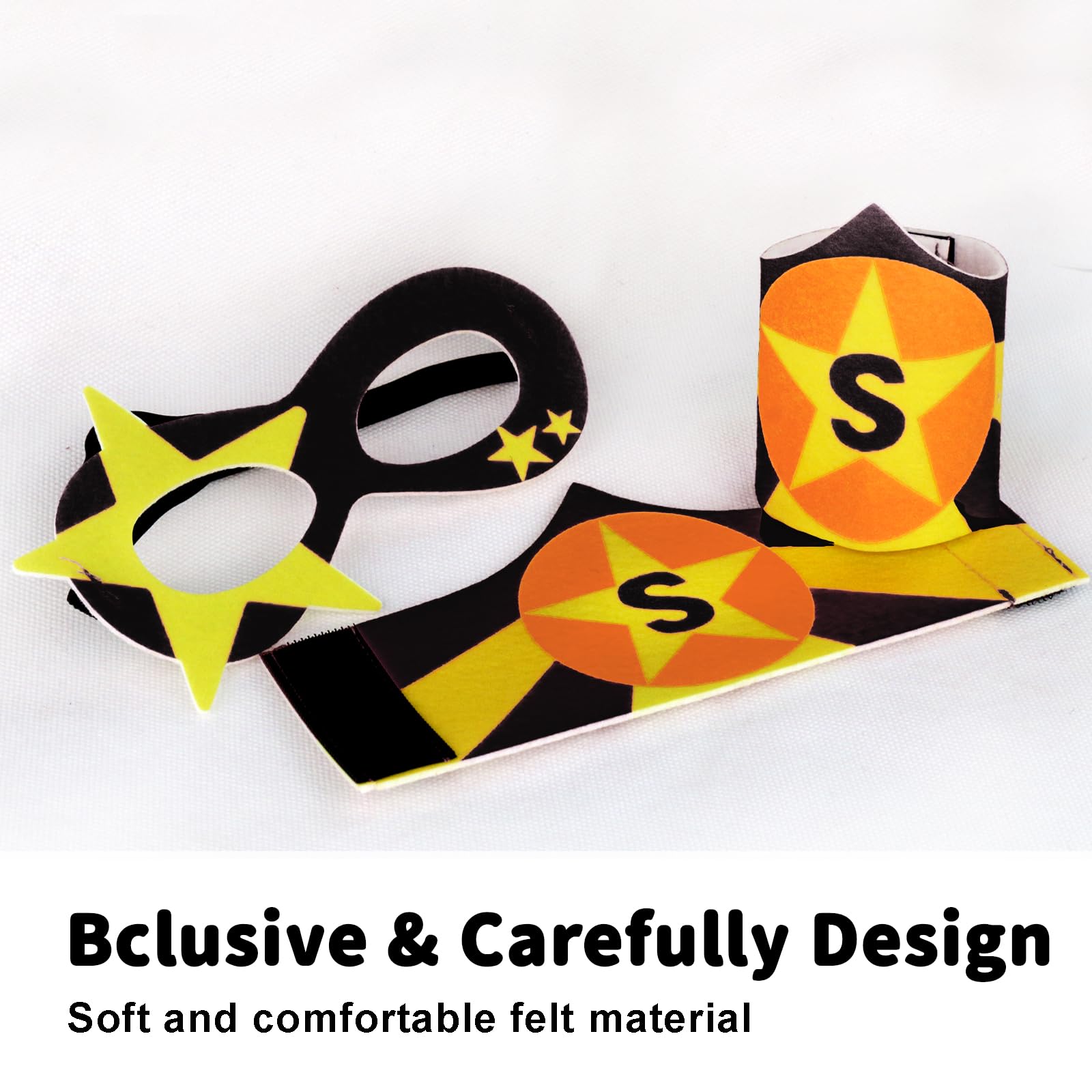 NEW UPGRADE - Star superhero capes for kids, made of child/eco-friendly Polyester, feature curved streamlined design, and Exquisite full-color digital printing, Unique and Durable. Superhero dress up mask and cuffs, made of soft felt with digital printing, vibrant and lively. Your Lilo hero will soar and save day, while their imaginations blossom.