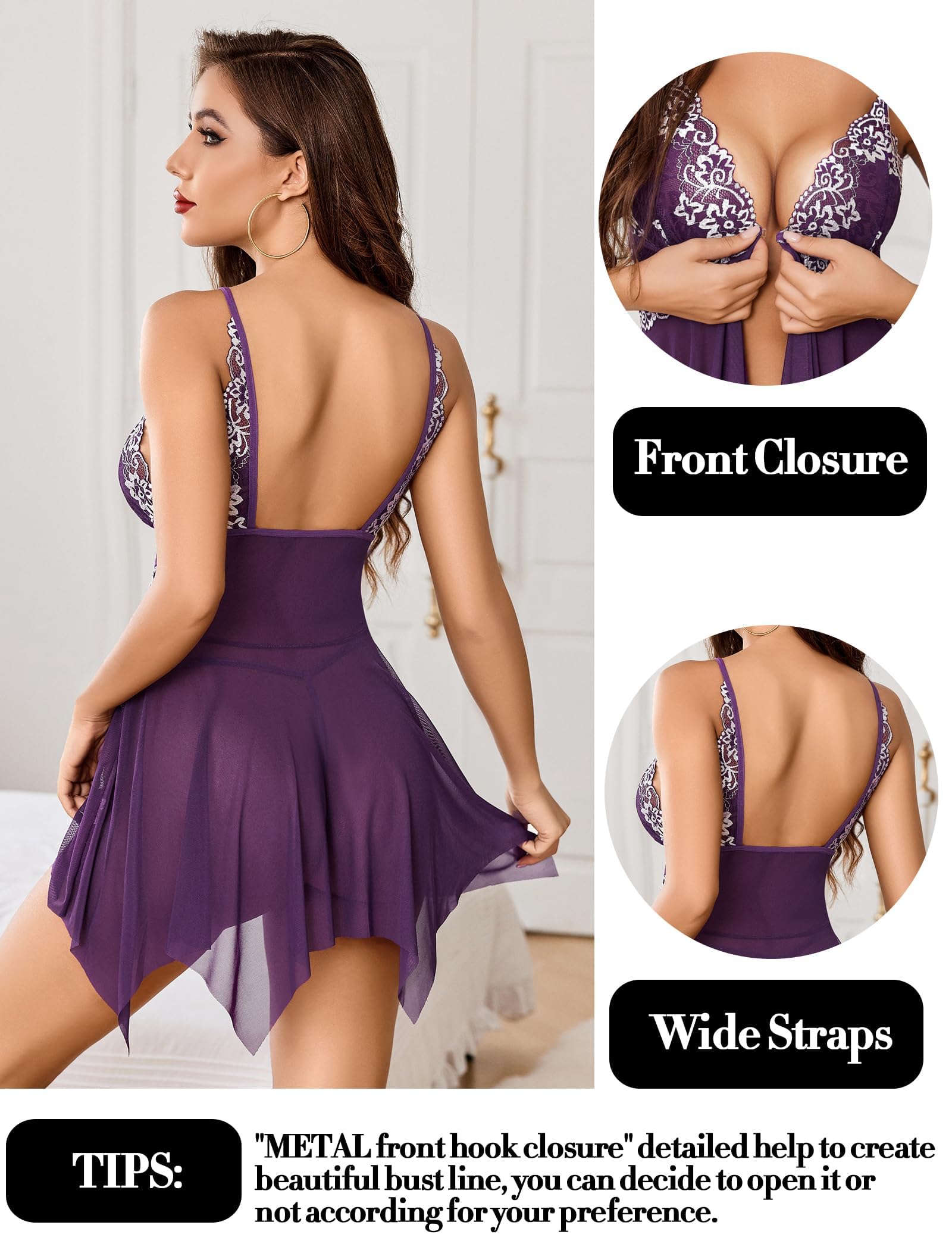 Avidlove lingerie for women with flattering and full asymmetrical hem to highlights your elongated legs' line, adjustable spaghetti straps to offer perfect fit, and the true beauty is shown through the bicolor floral lace cups