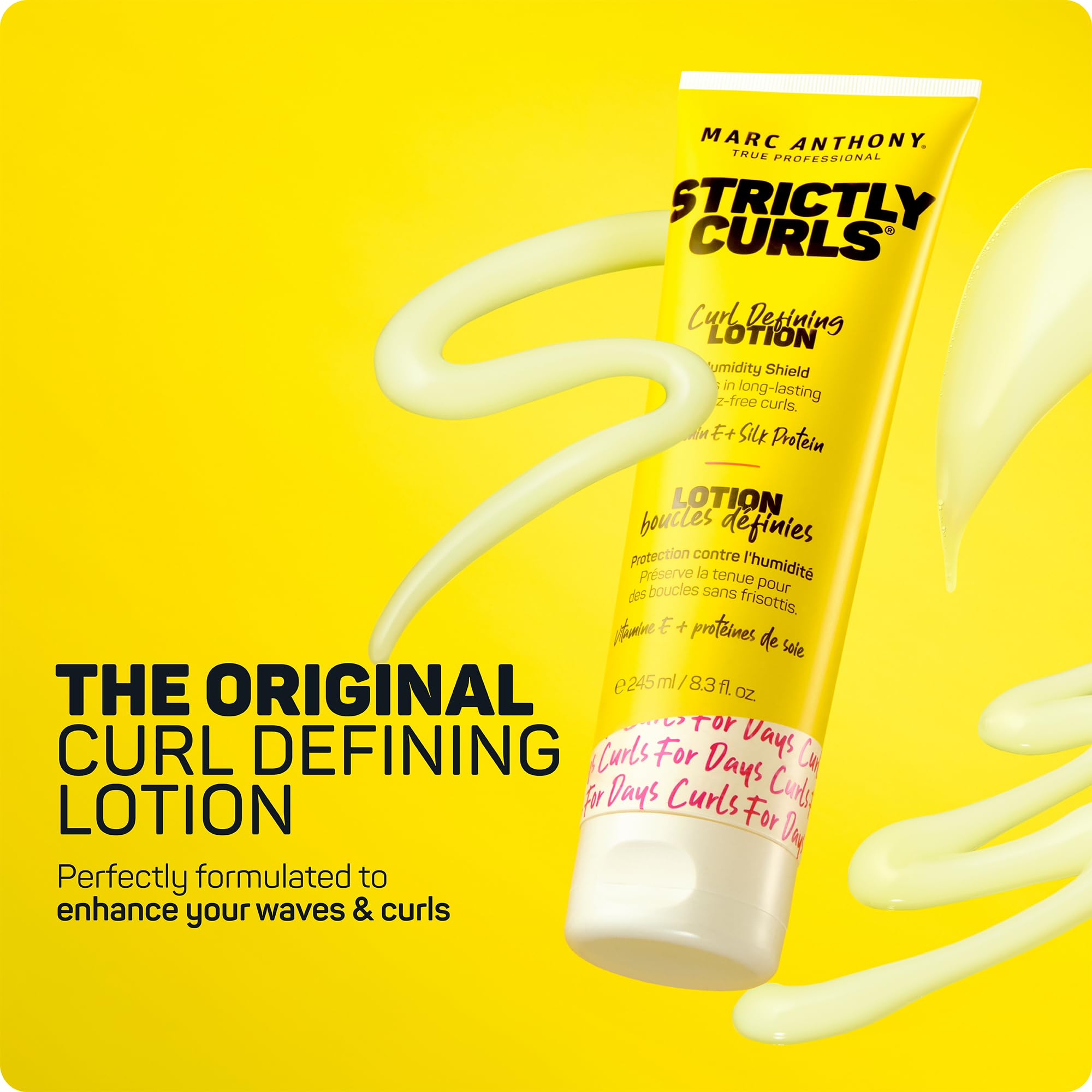 Product Description Strictly Curls Curl Defining Lotion: No weight, no stickiness. Crafted with Vitamin E and Silk Proteins, this defining lotion from Marc Anthony is known to create maximum definition while leaving your curls bouncy, frizz-free, and soft to the touch. Lock in the shape and shine for your best curls yet. 8.3 fl oz. Brand Story By Marc Anthony