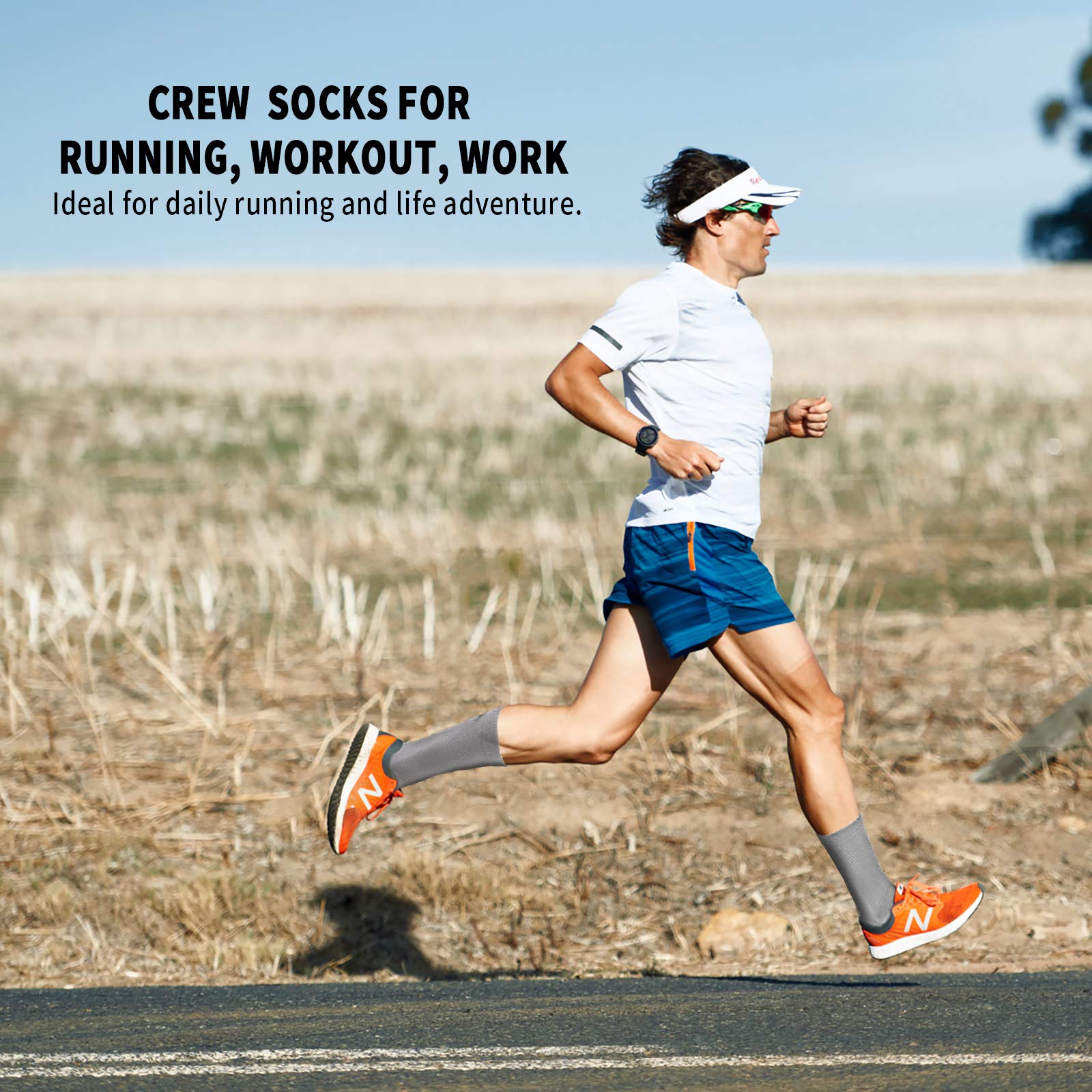 [Comfortable and Durable] Extended design to maintain ankle stability. These compresson running socks are of moderate height, between the calf and knee, giving a stable and comfortable feeling. Durable reinforced heel and toe make your crew socks more durable. An excellent gift choice for joggers, athletes, fitness enthusiasts, office workers, travelers, and all kinds of people